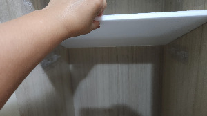 낮은 신발장일 경우엔 벽과 틈 사이 압축봉을 설치한다