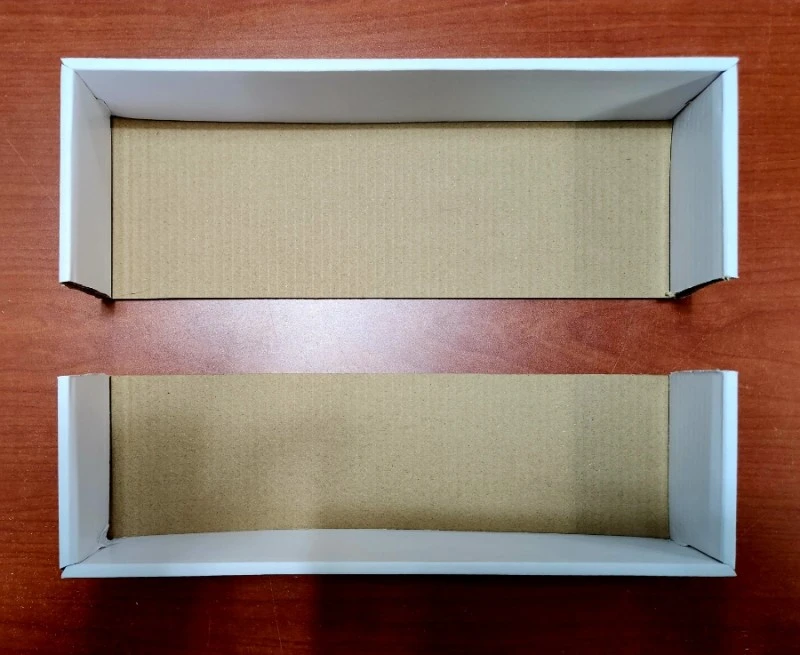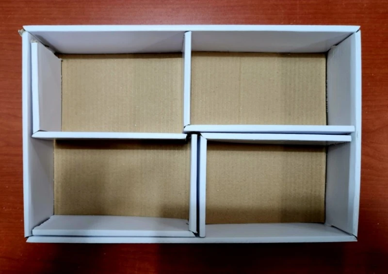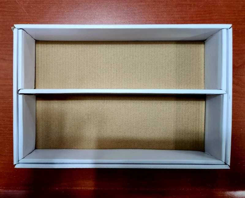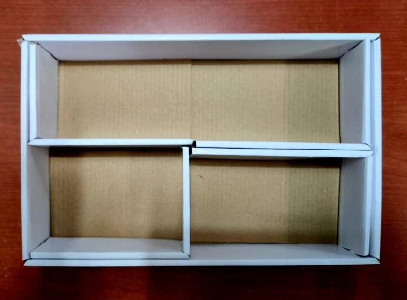 뚜껑보다 작은 본품 상자를 원하는 칸만큼 잘라 칸막이로 만든 후, 뚜껑 속에 섹션을 나눌 때 사용한다.