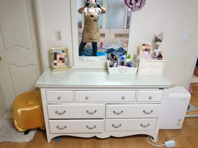 싹 비워진 화장대는 우선 깨끗이 닦는다