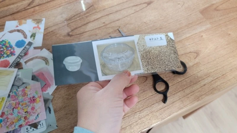 재료 종류도 많고 높이 수납하면 글씨도 잘 안 보이길래 재료 이미지를 인터넷으로 찾아 프린터기로 뽑아서 글자대신 붙여 드렸더니 고객님이 한눈에 잘 들어온다고 좋아하셨다.