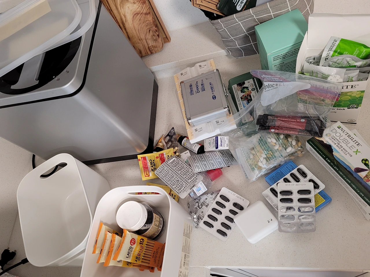 약은 모았다가 한 번에 종류별로 구분해서 폐 의약품 수거함에 버린다