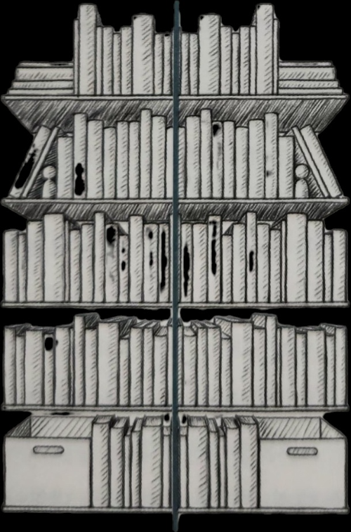 5번과 비슷한데 서로 마주 보는 거울처럼 책을 전부 꽂고 나서 전체 모양을 다듬는다.