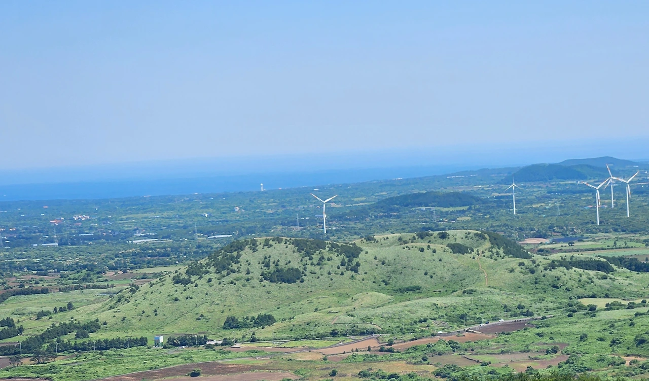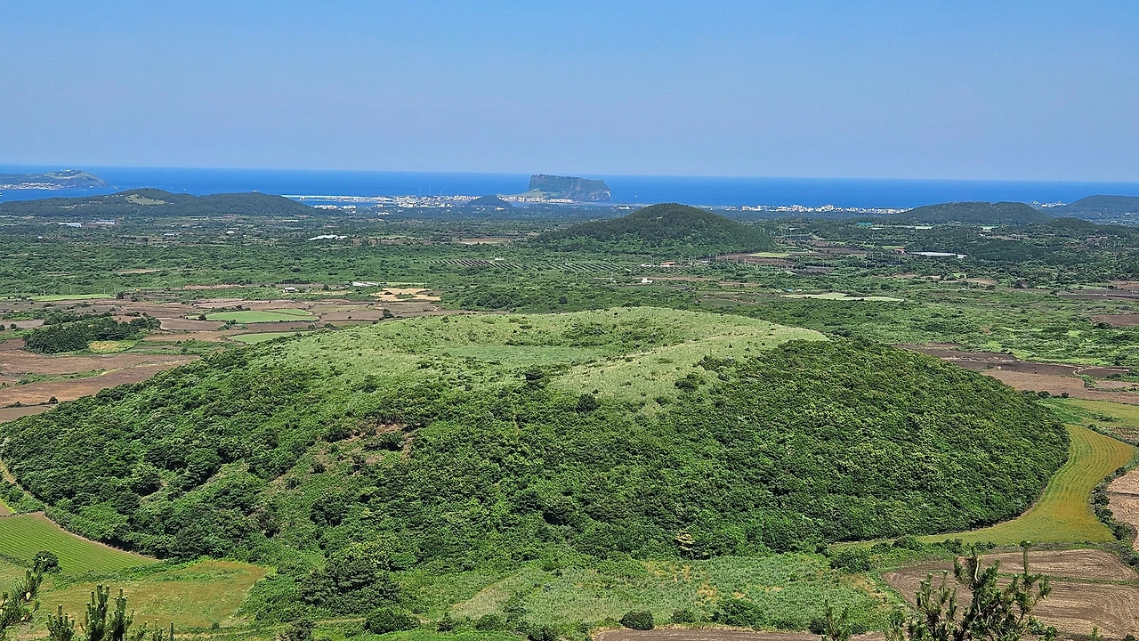 올레 코스를 완주했던 날, 우리는 바로 다랑쉬 오름으로 향했다. 그동안 글로만 보았던 다랑쉬 오름을 직접 확인할 수 있다는 생각에 가슴이 설레었다. 오름 입구까지 왔다가 발길을 돌린 적도 있어서 오래 묵혀둔 숙제를 하는 기분도 들었다. 오름 입구에는 잘 갖춰진 데크길이 있었다. 푸르름이 절정인 나무가 일자로 쭉쭉 뻗은 초입을 지나니 햇빛도 들어오고 주위 풍경도 조금씩 보였다. 방문자들을 배려한 것인지 지그재그로 길이 나 있었다. 중간 지점에 이르자 다랑쉬오름 바로 옆의 아끈다랑쉬오름이 보였다. 동그랗게 패인 분화구도 오름의 자태도 새끼다랑쉬라는 이름처럼 작고 귀여웠다. 쉬엄쉬엄 걸어서 오름의 가장 높은 곳에 올랐다. 정상에서 분화구를 보니 감탄이 저절로 나왔다. 바다 깊은 곳을 내려다보는 기분이었다. 몸을 던져 분화구 위를 날아보고 싶었다. 사방에서 불어오는 시원한 바람을 맞으며 오름의 정상에서 느끼는 눈 맛은 비할 것이 없었다. 한라산의 기운이 거기까지 이른 것 같았다. 한라산의 화산 활동으로 생겨난 기생화산이므로 그 느낌은 이유가 있을 것이었다. 곡선 그 자체로 예술인 용눈이 오름도 지척에 있었다. 보통의 오름보다 오르기에 힘이 들었지만 가지 않았으면 아쉬움이 클 뻔했다. 한라산을 중심으로 섬 한 바퀴를 걸었던 것처럼, 분화구 주위를 돌았다.