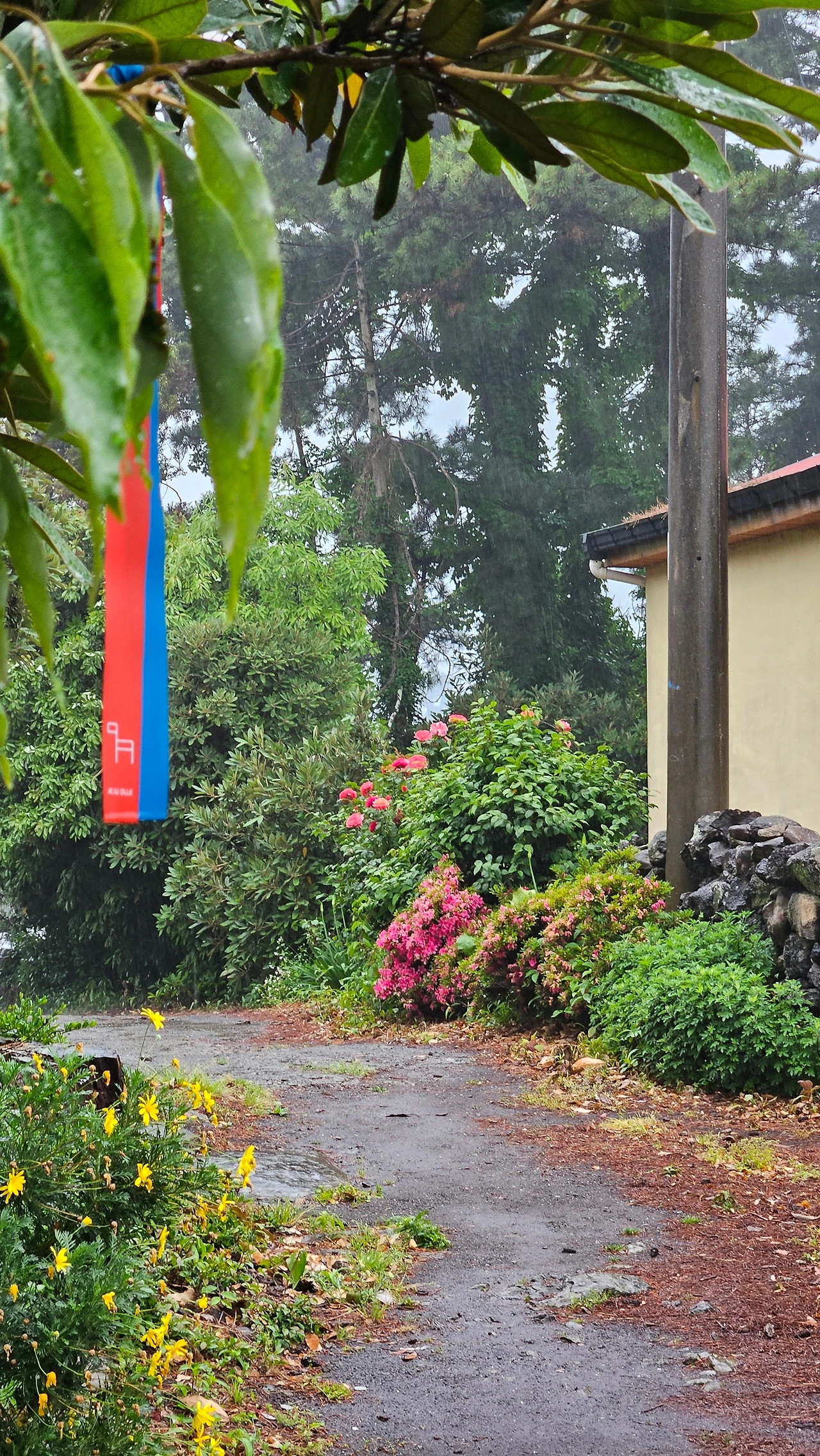 아침부터 하늘이 흐렸다. 출발하고 두어 시간은 구름 덕분에 전날의 불볕더위를 피할 수 있어 오히려 좋았다. 5코스 중간쯤에 이르렀을 즈음, 흐리던 하늘에 비가 내리기 시작했다. 봄비가 여름 소나기처럼 쏟아졌다. 일회용 비옷을 꺼내 입었다. 제주 사람은 비가 와도 우산을 쓰지 않는다고 한다. 제주도의 비는 얌전하게 위에서 아래로 내리지 않기 때문이다. 올레길을 걷기 시작하고 사나흘은 날씨가 좋았다. 소위 초심자의 행운은 날씨에도 적용이 되었다. 그것이 지속되리라는 자기 확신 때문이었던지 최대한 빠른 시간 내에 코스를 걷는다면 비를 피할 수 있지 않을까 하는 계산 오류 때문이었던지 비닐 우의만 챙겨 넣고 길을 나섰다. 좋았던 날씨가 지속될 것으로 착각하고 무거운 배낭을 걱정한 탓이기도 했다. 열심히 준비해 왔던 캠핑용 우의와 방수 덧신, 올레 패스포트가 젖지 않게 챙겼던 방수팩까지 고스란히 차에 두고 왔던 것이 잘못이었다. 몇 달의 철저한 준비가 별무 소용이었다. 아무리 열심히 준비했더라도 한 번의 방심으로 모든 것이 허위로 돌아가는 경우가 많다. 일을 할 때는 끝까지 긴장을 놓아서는 안된다. 비를 맞으며 나의 잘못된 판단을 자책했다. 물론, 그 역시 완벽한 채비는 못되었으리라는 것은 그 이후 몇 번 겪은 비로 확인이 되긴 했다.
