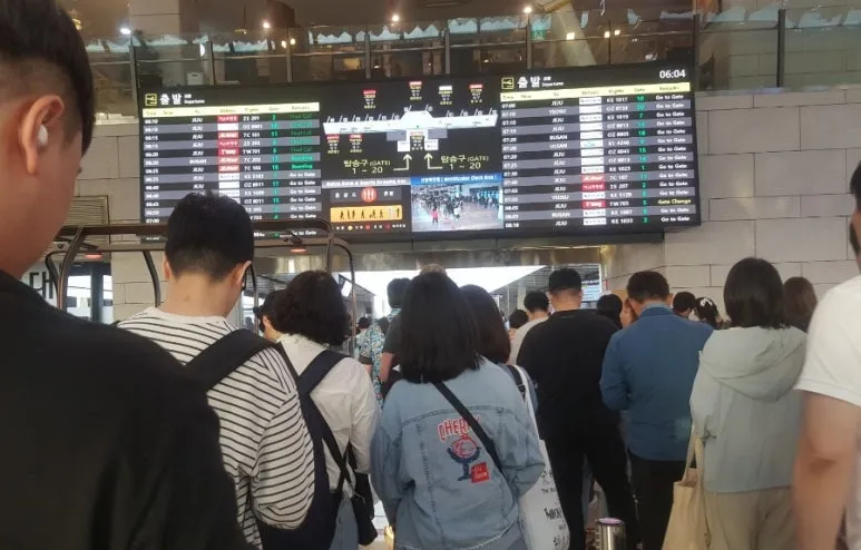 미리 1시간도 더 전에 도착해서, 키오스크에 self 탑승수속을 했다. 좌석 선택까지 마치고 탑승권을 발급받고, 짐은 배낭 한 개로도 충분해서 수하물 수속은 생략했다. 항공기 번호와 게이트 번호를 확인하고 탑승구로 가서 보안 검색대를 통과하고 게이트로 가서 비행기를 기다렸다.