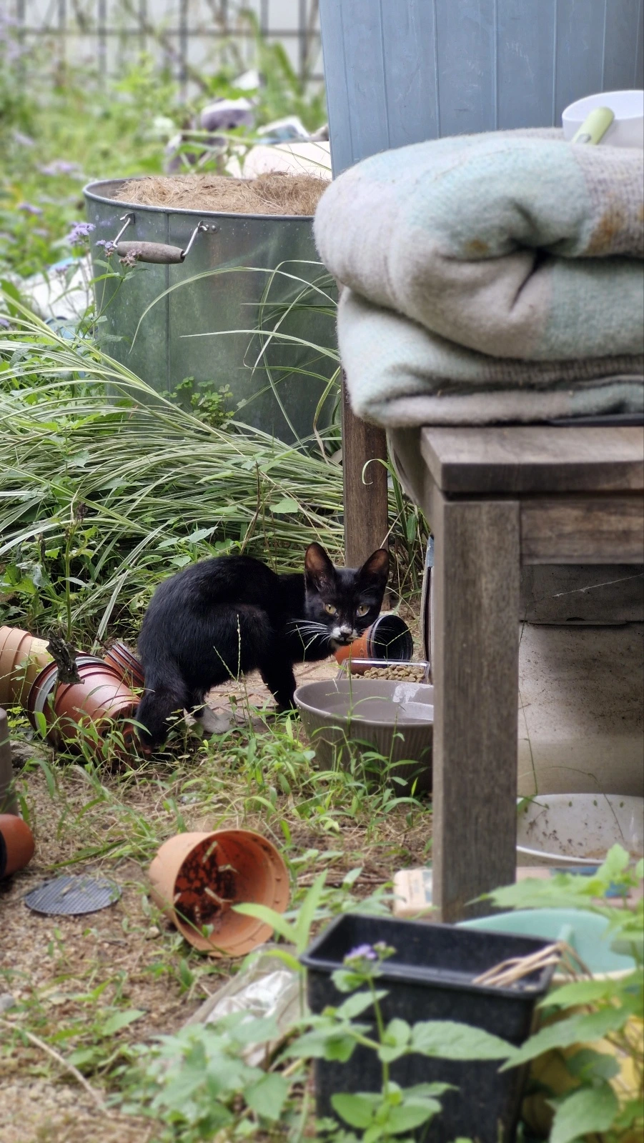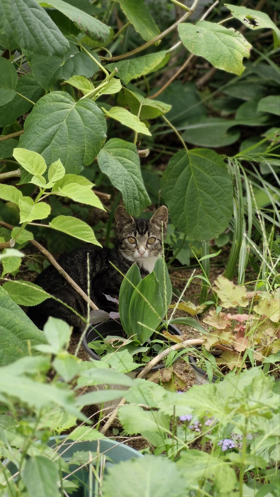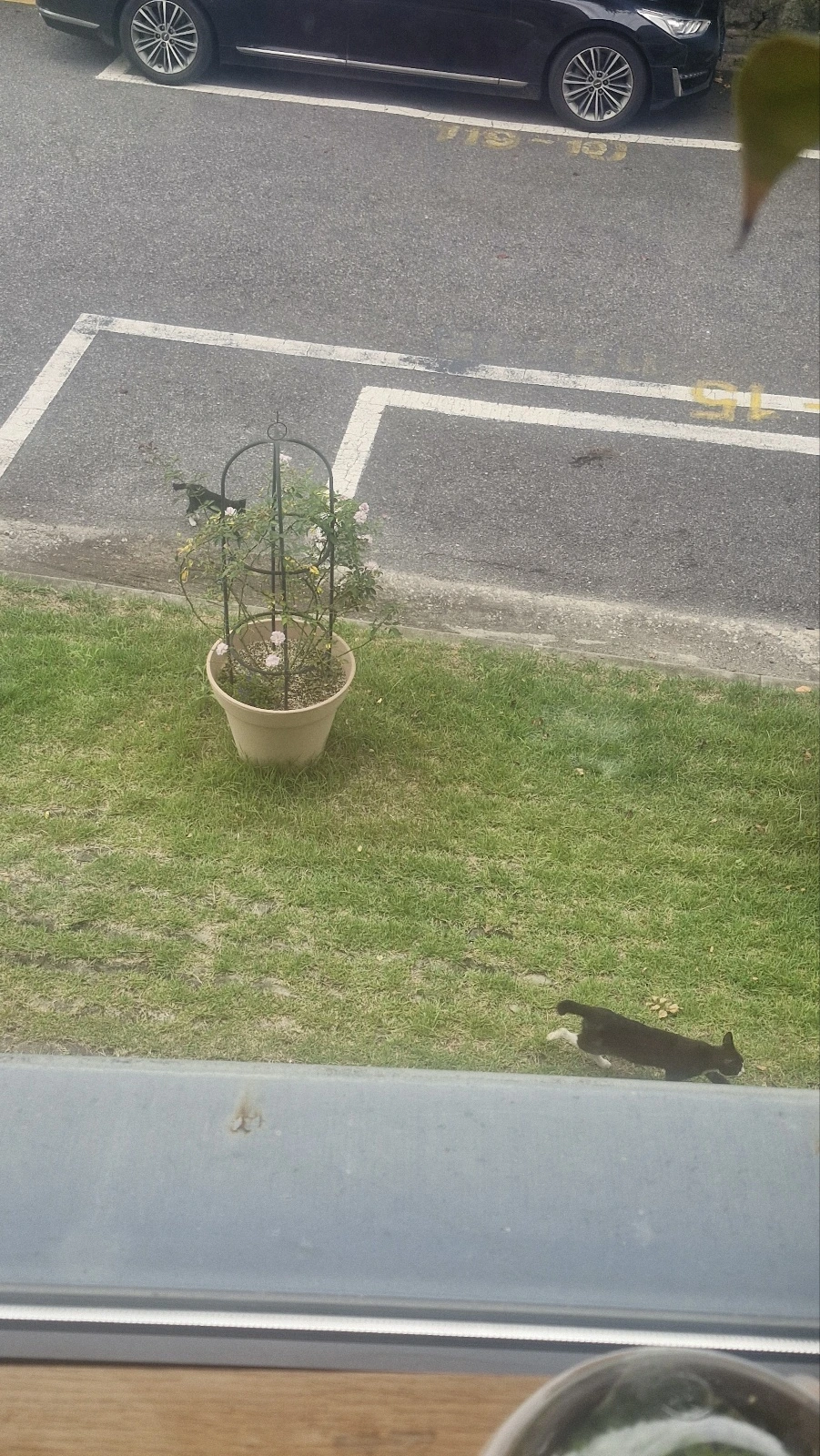 작년에 우리집에 오던 턱시도 길고양이가 한두달전 새끼를 나은듯 하다. 얼마전부터 형제로 보이는 새끼고양이 두마리가 보이기 시작했다. 우리집 정원 밥자리에서 밥을 먹기 시작하더니 며칠째 계속 보이는 걸 보니 눌러 앉아살기로 한 것 같다. 둘은 덩치가 비슷하고 얼굴모양도 비슷하고 무엇보다 늘 같이 다니고 뒹굴면서 놀았기 때문에 형제인 것 같았다. 그리고 작년부터 오던 턱시도 고양이의 자식이라고 생각한 이유는 어느날 이 턱시도 고양이가 자기와 같은 색깔의 까맣고 주둥이가 하얀 아주 작고 마른 새끼고양이를 1미터 간격을 두고 함께 나타난 것을 보았기 때문이다. 공짜 밥자리를 알려주는 것 같았다. “여기 호구집사 한마리 산단다”라고. 어미는 이제 보이지 않는다.