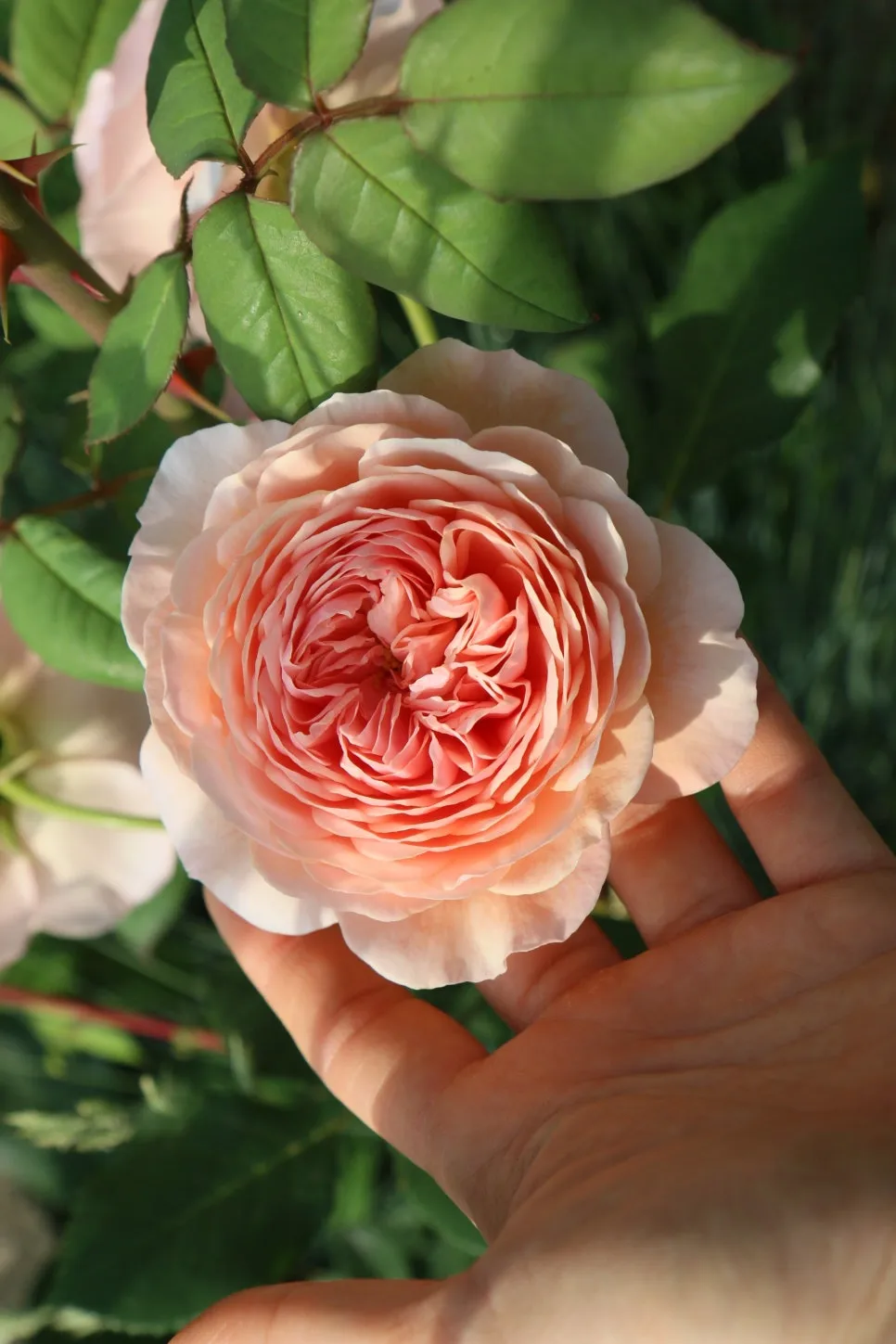 그 옆에 심어진 문보우도 오래 키웠다. 문보우는 영국장미 필그림의 돌연변이 장미를 한국정원가가 개인의 정원에서 발견한 장미이다. 노랑색의 필그림의 꽃가지 옆에 어느날 핑크살몬색의 꽃이 피어있는 것을 발견했고, 정원사가 그 가지를 떼어 새로운 품종이 탄생한 것이다. 그리고 그 정원사는 문보우라고 이름을 붙였다. 내 정원에서는 덩치가 큰 스피릿과 필그림이라는 장미 사이에 있다. 사실은 그 자리는 양쪽 장미의 덩치를 고려한다면 심지 말았어야 했다. 그런데 작게 자라날 거라 생각해서 그만 심어버리고 말았다. 문보우는 초반성장이 다른 장미와 달리 느린 편이어서 계속 자라나지 못했는데 2년 전부터 굵은 가지들을 내 주었다. 굵은 가지가 나온 이후로는 매년 만개를 기대했지만 실망에 그치고 말았다. 가끔 한송이씩 커다랗게 피는 문보우를 보고 해갈할 수 있을 뿐이었다. 배열된 꽃잎이 규칙적이다…라고 하는 것을 넘어서 초규칙적이라고 표현하면 어떨까요? 라고 블로그 이웃님께 말했던 것처럼 꽃잎과 꽃잎 사이의 거리가 비현실적인 정확성을 가지고 있어서 묘한 느낌을 준다. 그리고 올해도 생각한다. 만화같은 개화를 볼 수 있는 해는 바로 올해일까.라고.