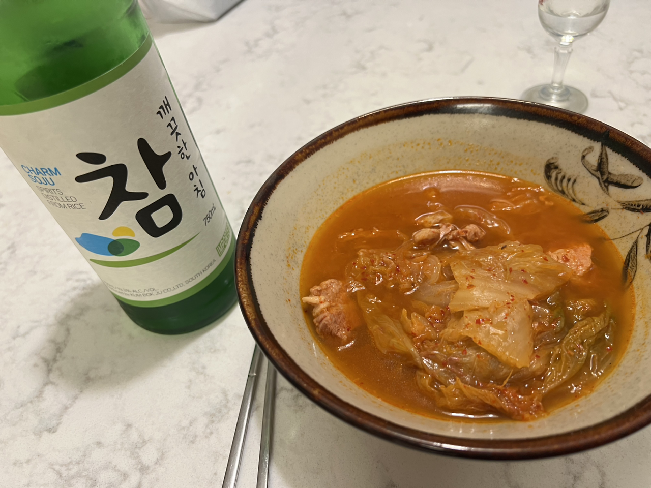 [소주와 김치찌개로 즐기는 혼자만의 늦은 저녁]