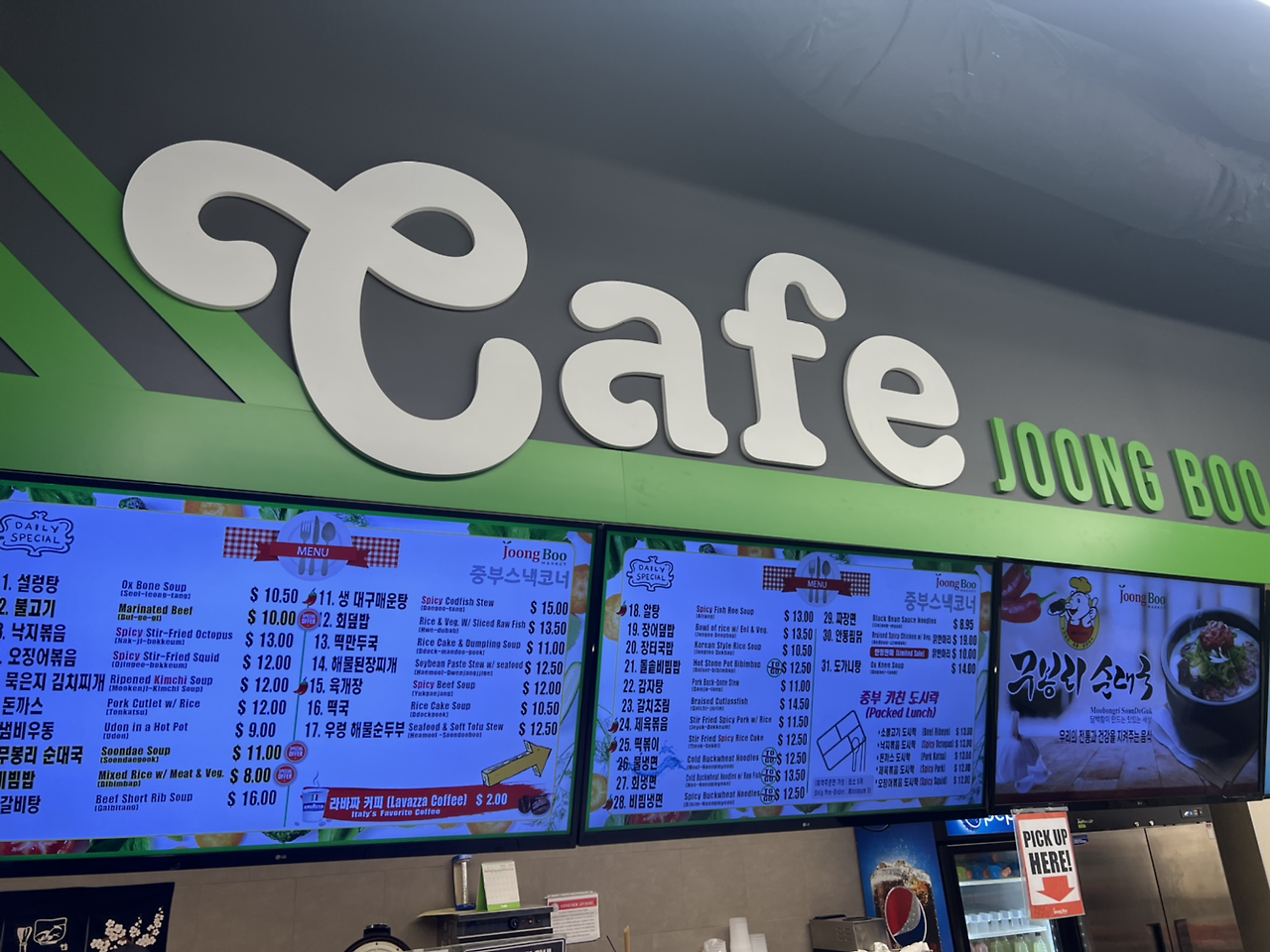 [요즘 자주 들르게 되는 '중부 마켓' 푸드코드 규모고 크고, 마트 크기가 웬만한 이마트 만하다. 와인병 사이즈의 소주가 신기해서 구매해 보았다. 브랜드 탓일까 처음처럼, 참이슬은 다른 브랜드 대비 무려 2달러가 비싸다]