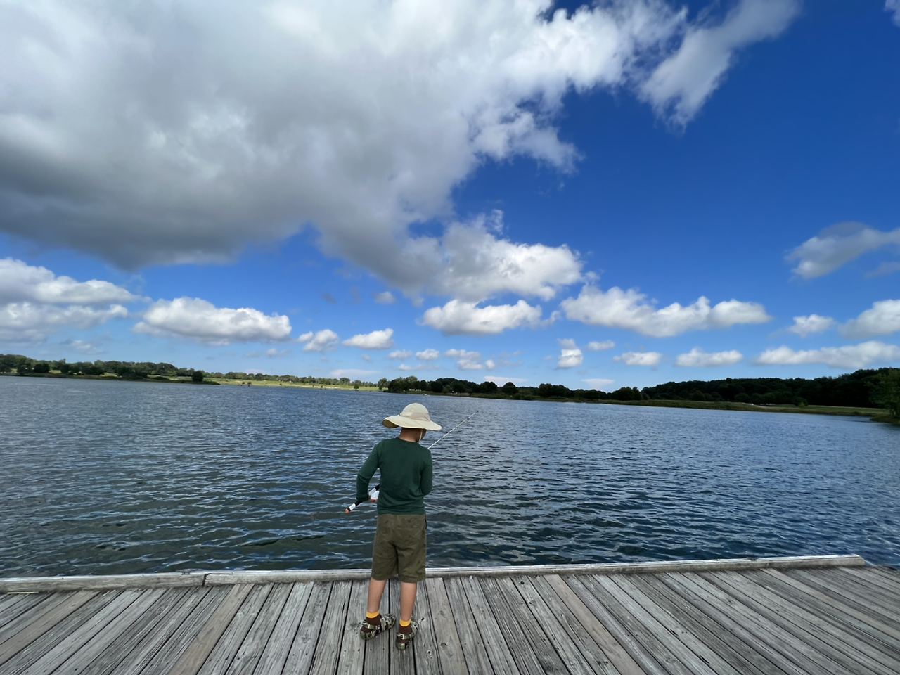 미국에 와서 가장 놀랐던 점은 동네 곳곳마다 각종 강, 호수, 연못들이 많고, 거의 모든 곳에서 자유롭게 낚시를 할 수 있다는 것이었다. 우리 같은 가족에게는 그야말로 최고의 조건인 셈이다. 더 이상 실내외 낚시터에 한 번에 4~5만 원 투자하지 않아도 몇 시간씩 마음껏 낚시를 즐길 수 있는 것이다. 물론 대부분이 'Catch and Release' 방식으로 손맛만 즐기고 놔주는 형태가 많으나, 어떤 곳은 하루 몇 마리까지는 가져갈 수도 있다. 시카고 도심 주변의 미시간 호수 변에서는 11월에 연어가 대거 이동하는 철이라 그때 잡은 연어는 마음껏 집에 가져가져도 된단다. 생각만 해도 설레는 11월이다. 재밌는 점은 낚시를 하려면 'Fishing license'를 가지고 있어야 하는데, 운전면허처럼 '취득'하는 게 아니라, 월마트에 가서 돈 주고 '발급' 받는 형태이다. 동네마다 다소 차이는 있지만 우리 동네 주변은 30불이고, 위에서 언급한 미시간 호수 연어 낚시하려면 5불 추가해야 한다. 이 라이선스 없이 낚시하다 경찰에게 걸리면 벌금을 내야 한다니 얼른 만들고 말았다.