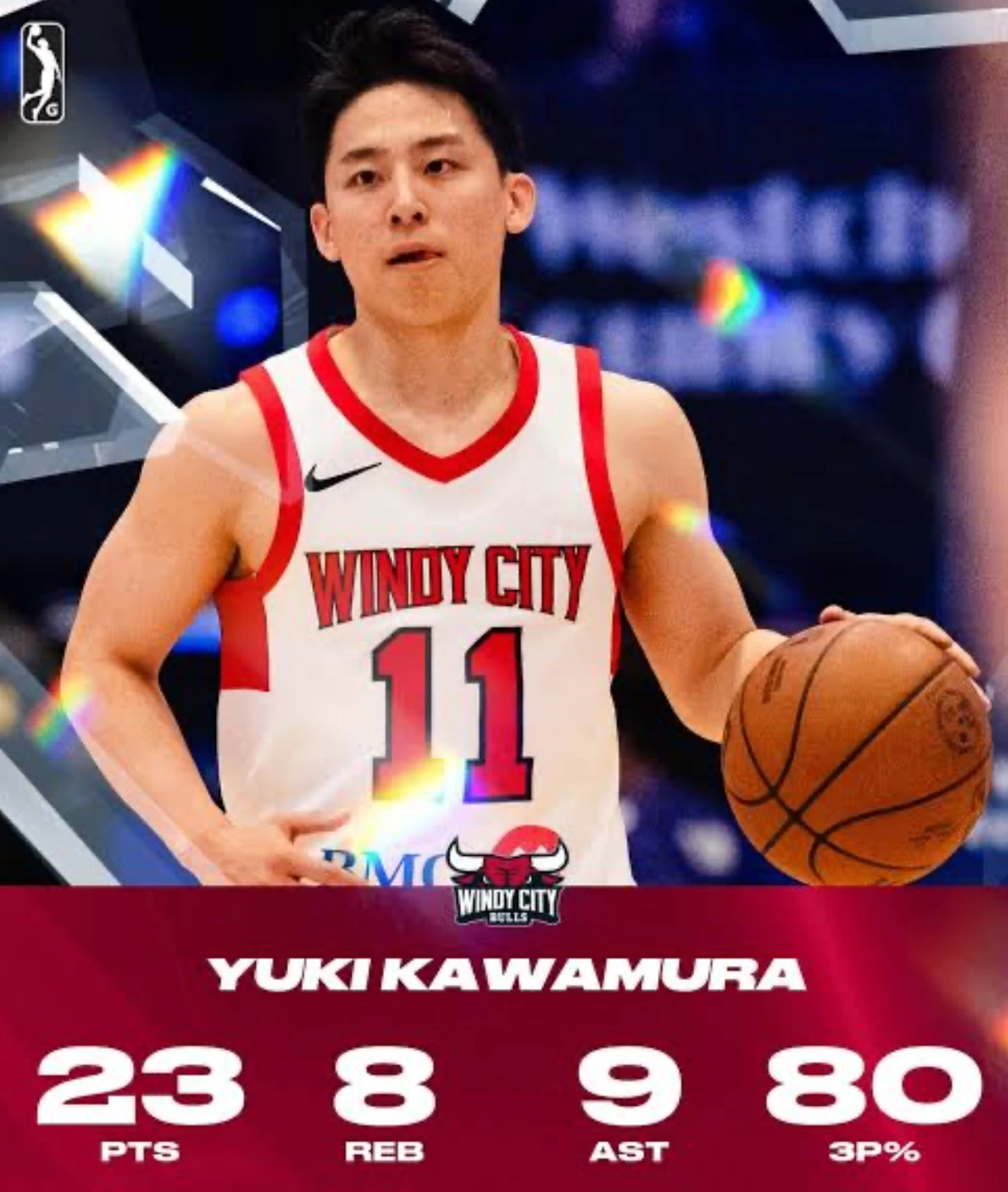 만화 슬램덩크의 송태섭 캐릭터가 마치 현실 세계에 나타난듯한 외모와 사이즈. 실제 농구 스타일도 빠른 포인트가드여서 더 그렇게 느끼게 된다. 이러한 카와무라 유키가 우여곡절 끝에 시카고 불스에 *투웨이 계약 선수로 합류하였다.(*주로 2부 리그인 G리그에서 뛰다가, 1부인 NBA에서 요청하면 몇 경기 뛰는 계약형태)