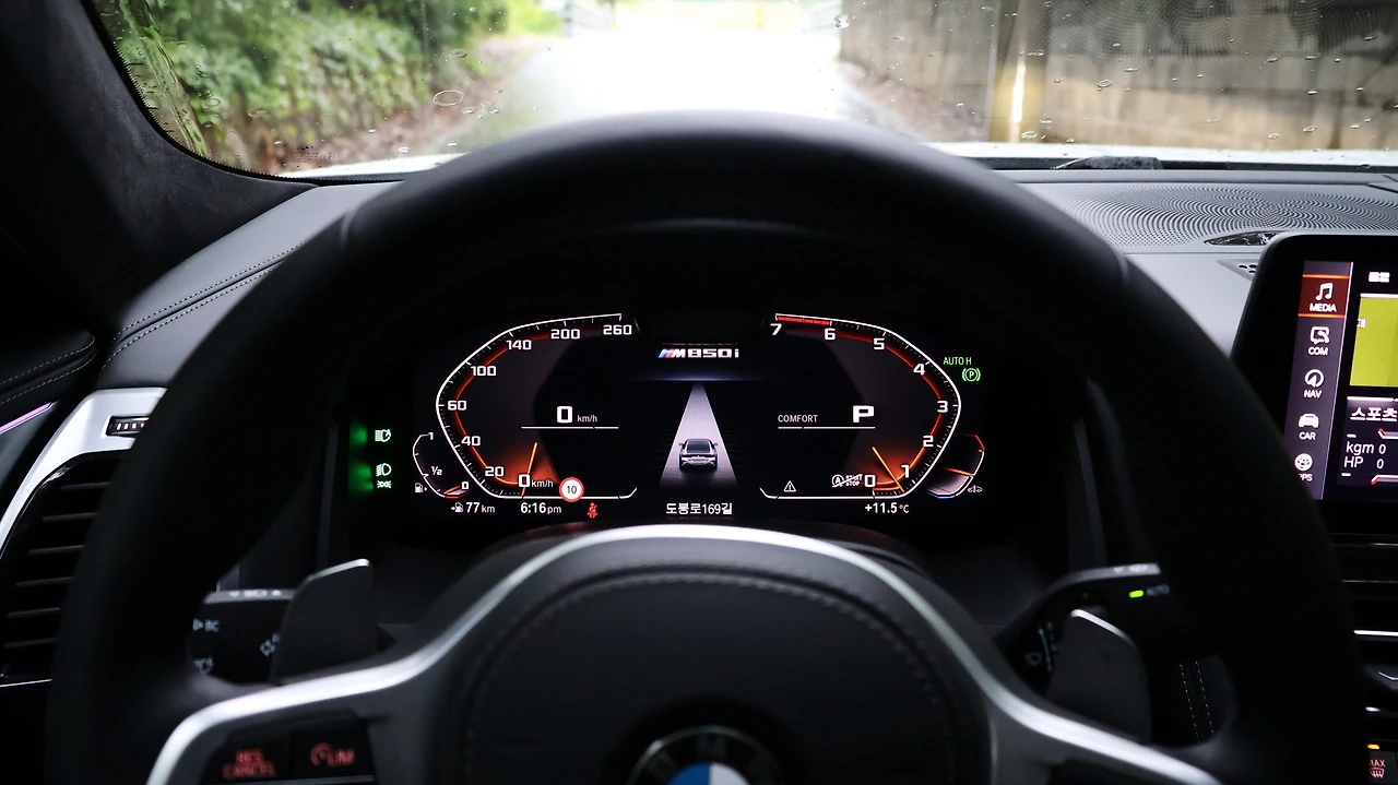 개인적으로는 야간에 바라보는 M850i의 인테리어가 가장 매력적이었다. 도어트림과 센터페시아를 감싸는 엠비언트 라이트가 화려함을 자극한다. 특히 바워스&윌킨스 서라운드 스피커는 풍부한 음향 성능과 함께, 고급스러운 장식 효과까지 책임졌다. 기어노브에 각인된 '8'숫자가 더욱 눈에 띄기도 한다. 소프트 클로징 도어를 닫고 시트에 앉으면, 고급스러운 가죽의 질감과 포근하게 감싸주는 볼스터가 편안한 착좌감을 제공하기도 했다. M스포츠 스티어링 휠은 두꺼운 그립을 가졌고, 뒷면에 홈이 파여있는 형태라서 더욱 안정적으로 손에 쥘 수 있다.