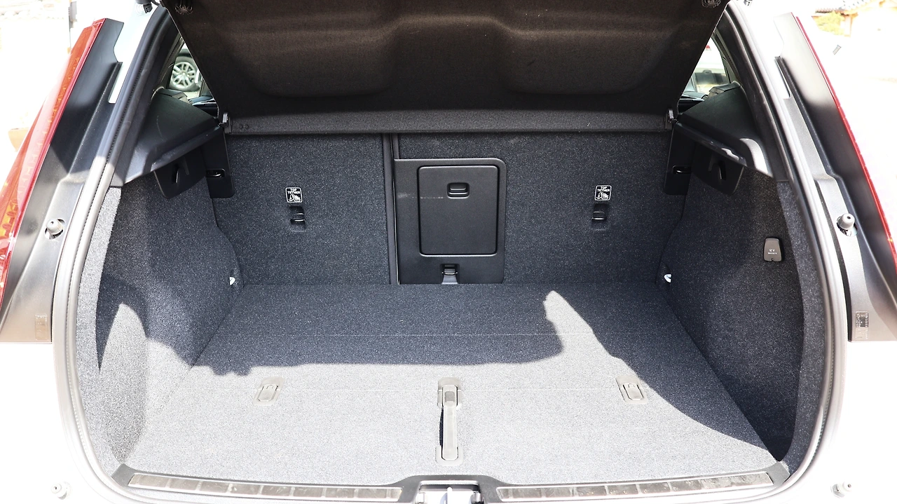 2열 좌석이다. CUV치고는 예상보다 안락한 공간을 보여준다. 특히 타이트한 공간에 시트포지션을 효율적으로 구현했다. 상위 모델보다는 시트 안장이 좁은 대신 레그룸을 넓혔고, 대신 포지션 자체를 높이며 탑승감을 개선한다. 실내에서 보면 루프를 아치 형태로 구성하여 개방감을 확보했으며, 파노라마 선루프까지 탑재되어 시야도 넓혀진다. 편의장비로는 에어벤트와 시트 열선, 암레스트 컵홀더가 제공된 모습이다. 전동 트렁크와 러기지 보드도 기본 구성, 예상보다 넓은 적재용량을 보여주는 트렁크는 바닥 매트 아래에도 활용할 만한 공간이 남아있다.