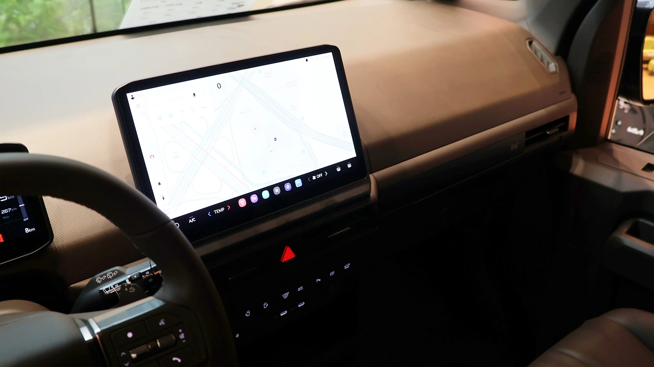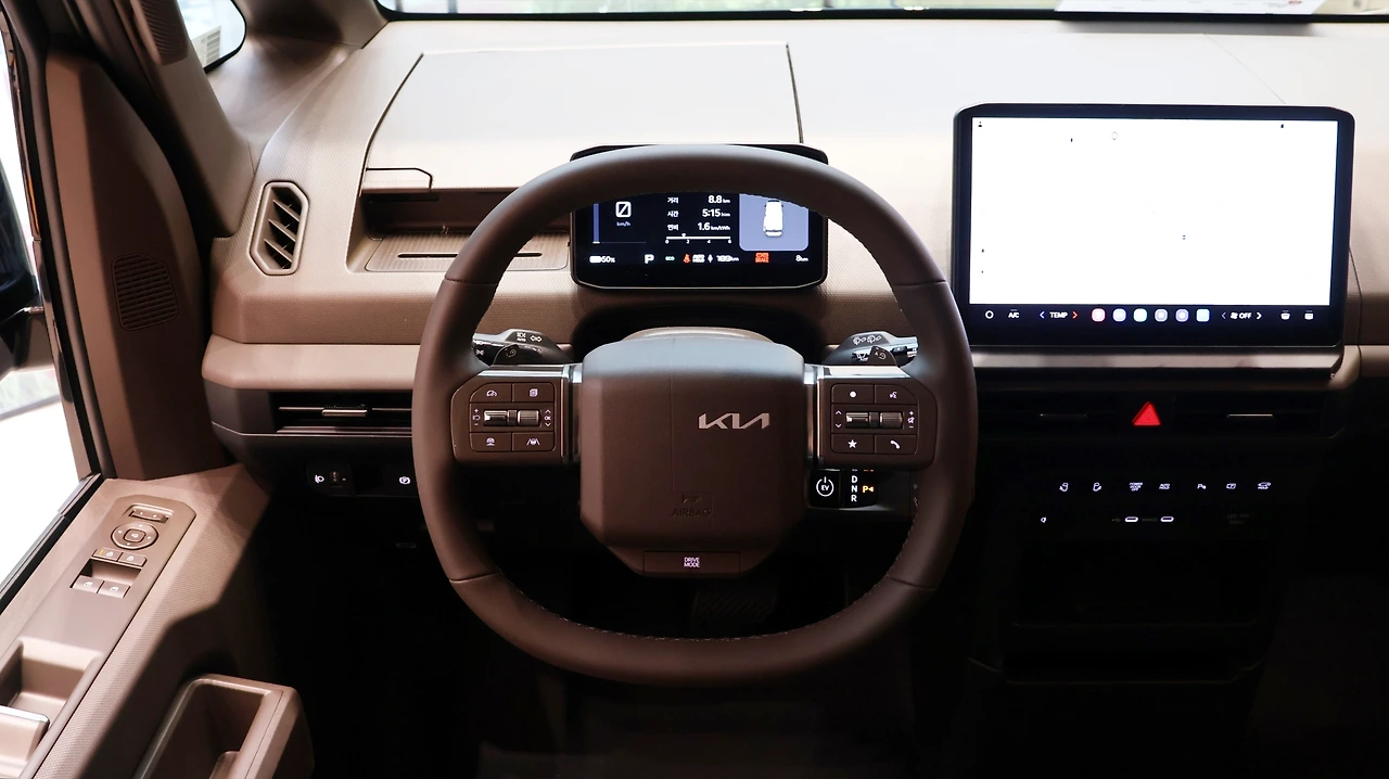 1열 공간이다. 7인치 디지털 클러스터와 12.9인치 센터 스크린으로 인터페이스를 구축했으며, 운영체제로 안드로이드 기반 AAOS를 최초로 탑재한다. 대화면 스크린 탑재를 통해 센터 페시아는 간소화되었고, 센터 콘솔은 컵홀더 위주의 구성이다. 기어 레버는 칼럼 타입이다. 선반형 대시보드를 상단에 추가 수납공간이 마련되어 있기도 하다. 스티어링 휠은 더블 D컷 형태로 직사각형 형태의 클러스터 시인성 확보에 유리한 모습이다. 함께 그립 감지 기능을 포함한다. 벨트라인을 낮게 하면서 창문 버튼과 도어 캐치가 도어트림 상단에 배치되어 있다.