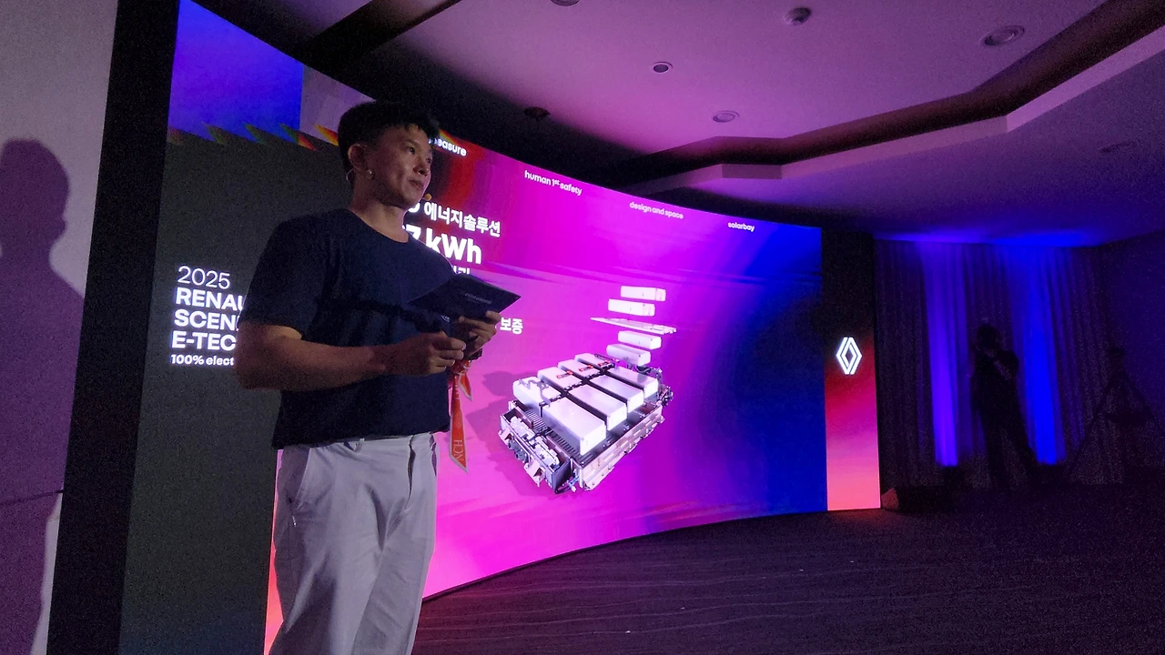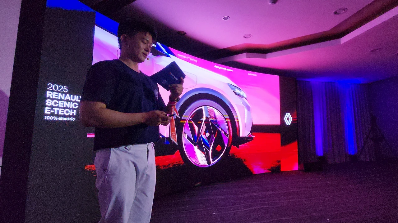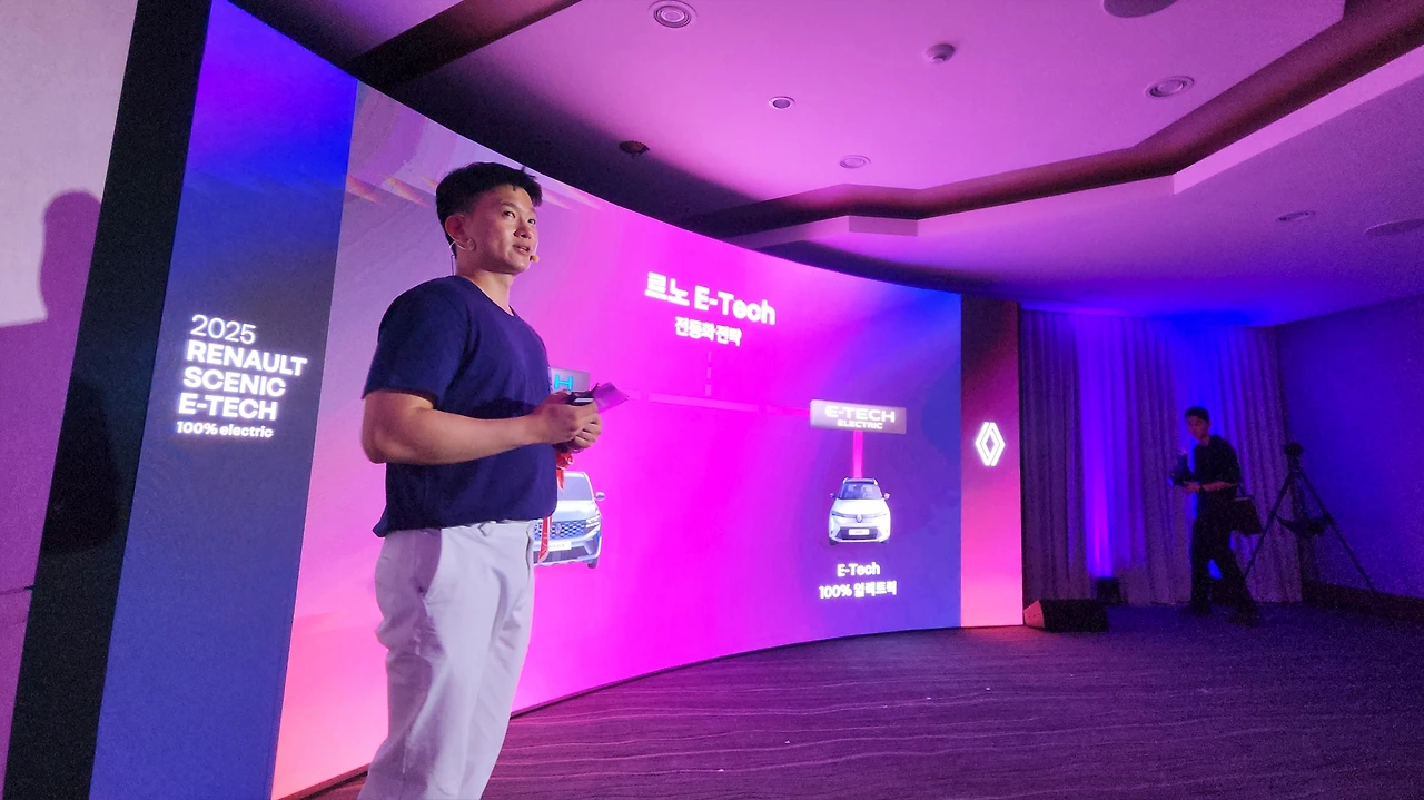 르노 세닉 E-테크에 대해서 알아보는 시간을 가졌다. PR은 서훈하 르노 코리아 마케팅 커뮤니케이션 팀장이 담당했다. 100% 일렉트릭이라는 수식어처럼, 르노 코리아의 리브랜딩 이후 한국 시장에서 처음으로 선보이는 순수 전기 자동차다. 앞서 견조한 실적을 보여준 그랑 콜레오스와 아르카나의 하이브리드 모델에도 'E-테크'라는 명칭이 더해진 바 있는데, 이번 주인공 세닉에는 'E-테크 일렉트릭'이라는 수식어가 쓰인다. 즉, 르노의 전동화 전략을 통칭하는 'E-테크'는 병렬 하이브리드와 순수 전기차 두 가지 방식으로 이원화되고 있다.