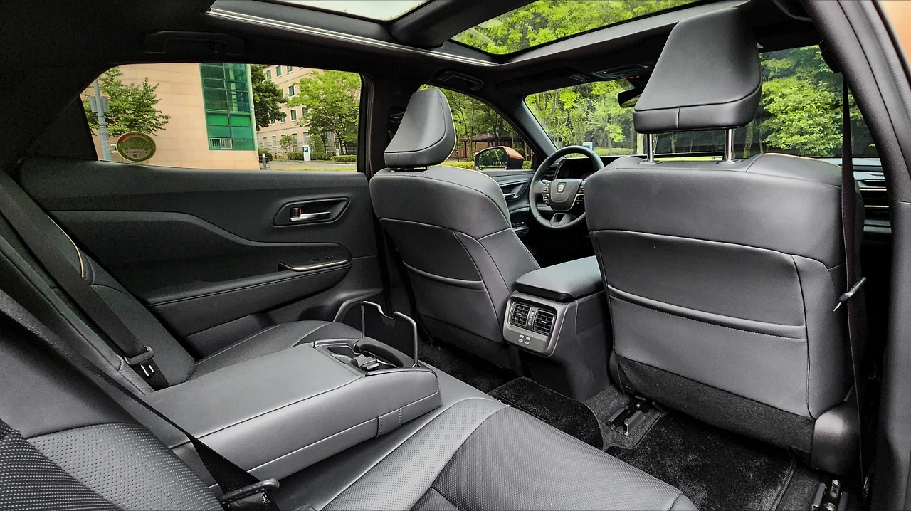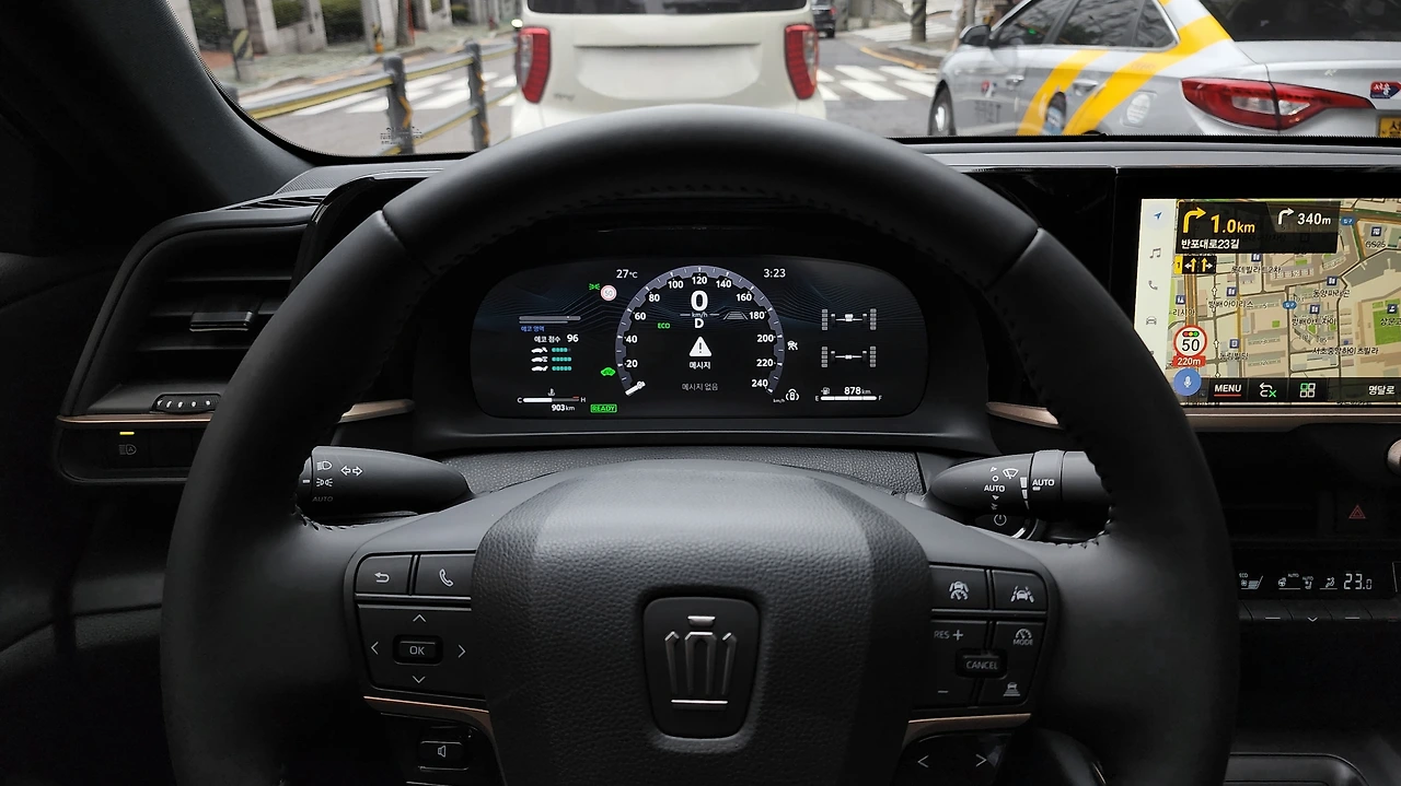 그렇다고 주행성이 크게 뒤처지지도 않는다. 무게 중심이 잘 잡혀있는 듯, 급 선회에도 심한 롤링과 피칭은 억제되어 있다. 스티어링은 뉴트럴 성향으로 생각보다 회전반경이 좁았다. 스포츠 모드에서는 엔진이 점화되면 주행에 상시적으로 개입하는 모습이다. 다만 하이브리드의 특성상 가속감이 흥미롭지는 않다. 장점이자 단점으로 펀치력이 초반 가속에 집중되어 있는 느낌이다. 급가속 시 초반에는 속도계가 재빠르게 상승하지만, 이내 가속력은 둔화되었다. 전체적인 가속시간은 짧더라도 상대적으로 토크감의 저하가 빠르게 오는 느낌이다.