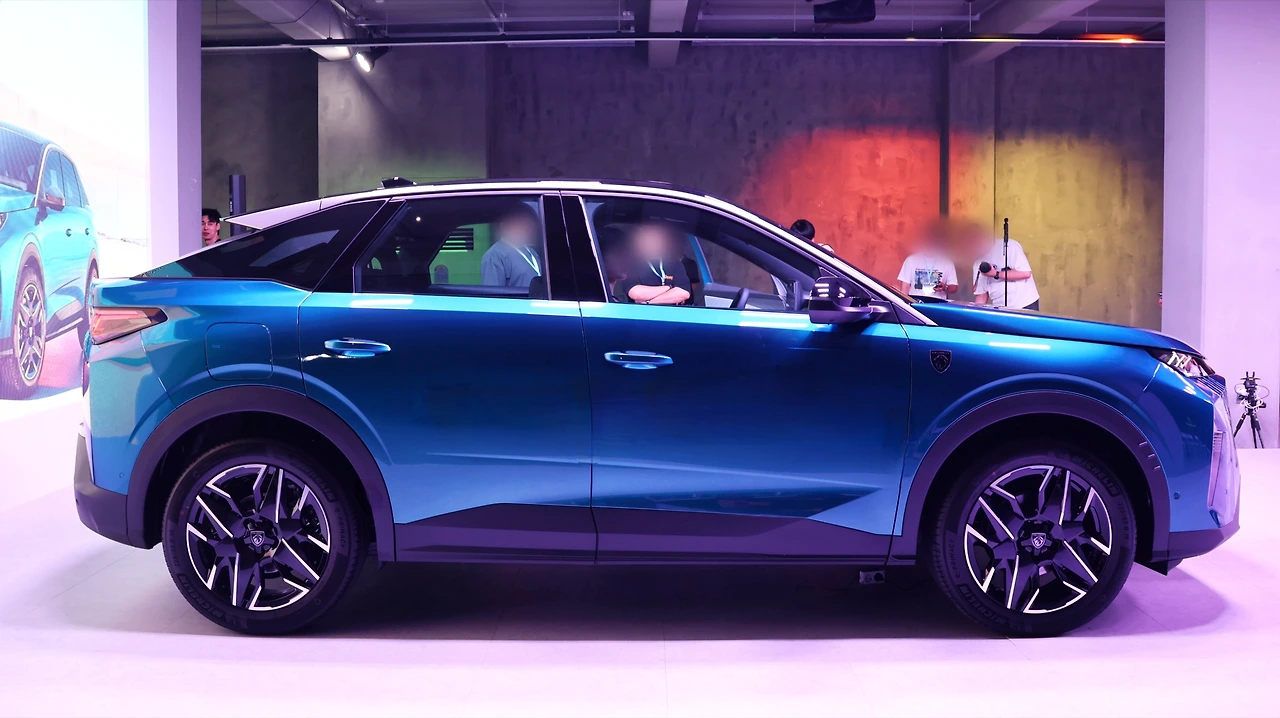 측면에서 가장 눈에 띄는 부분은 거대한 크기의 휠 아치다. 전체적인 프로필을 더욱 역동적으로 느껴지게 하며, 이번 3008의 핵심 패스트백 루프와 더욱 대비를 이루는 부분이기도 했다. 휠 사이즈는 19인치, 알루미늄 소재로 비대칭형 디자인이 독특함을 더해준다. 벨트라인의 웨더 스트립을 생략했다는 점, 그리고 세분화된 로커패널의 입체적인 형상 등 '프렌치 디테일'이 가득 담겨있다. GT 트림부터는 블랙 스포일러와 사이드 푸조 배지, 그리고 후면부의 3D LED 테일램프로 더욱 정교한 스타일링을 실현해 준다.