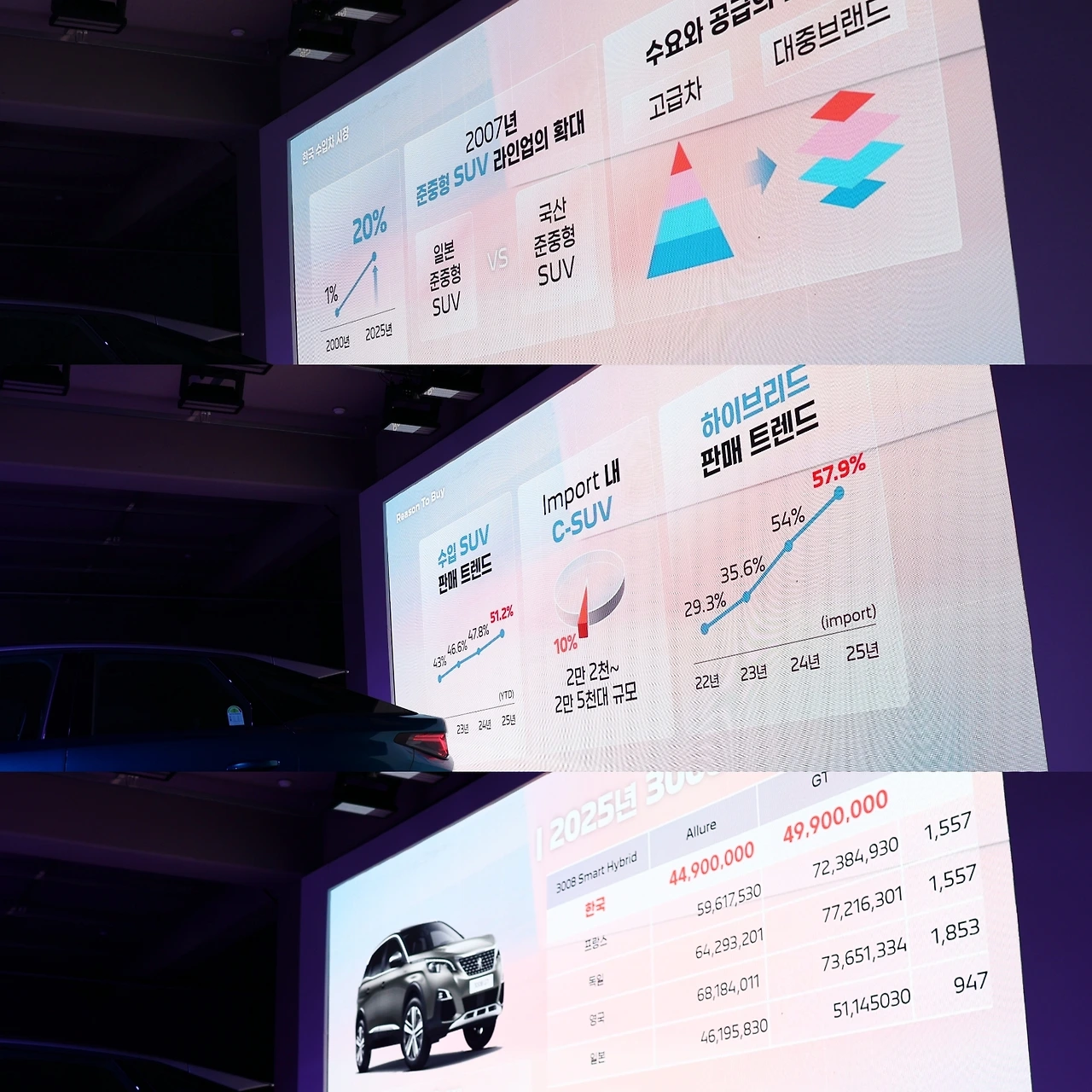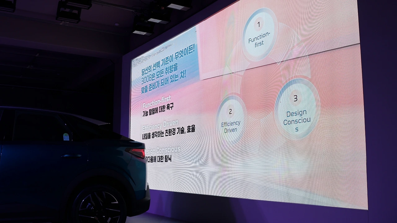 스텔란티스 코리아 방실 사장의 인사말로 올 뉴 3008 스마트 하이브리드의 코리아 프리미어가 시작된다. 미디어 아티스트 유환 작가의 오프닝 퍼포먼스로 올 뉴 3008의 역동적인 디자인이 공개되었다. 방실 사장은 1987년 개방된 수입차 시장의 희박한 점유율이 오늘날 20% 이상으로 성장하게 된 배경으로, 수입 소형 SUV 판매를 통한 접근성 개선을 지목했다. 올해 수입차 시장 판매 점유율 50% 이상이 SUV라는 점, 또 2대중 1대가 하이브리드로 판매되고 있다는 점에서 모든 조건을 만족한 '올 뉴 3008 스마트 하이브리드'의 청사진을 그렸다.