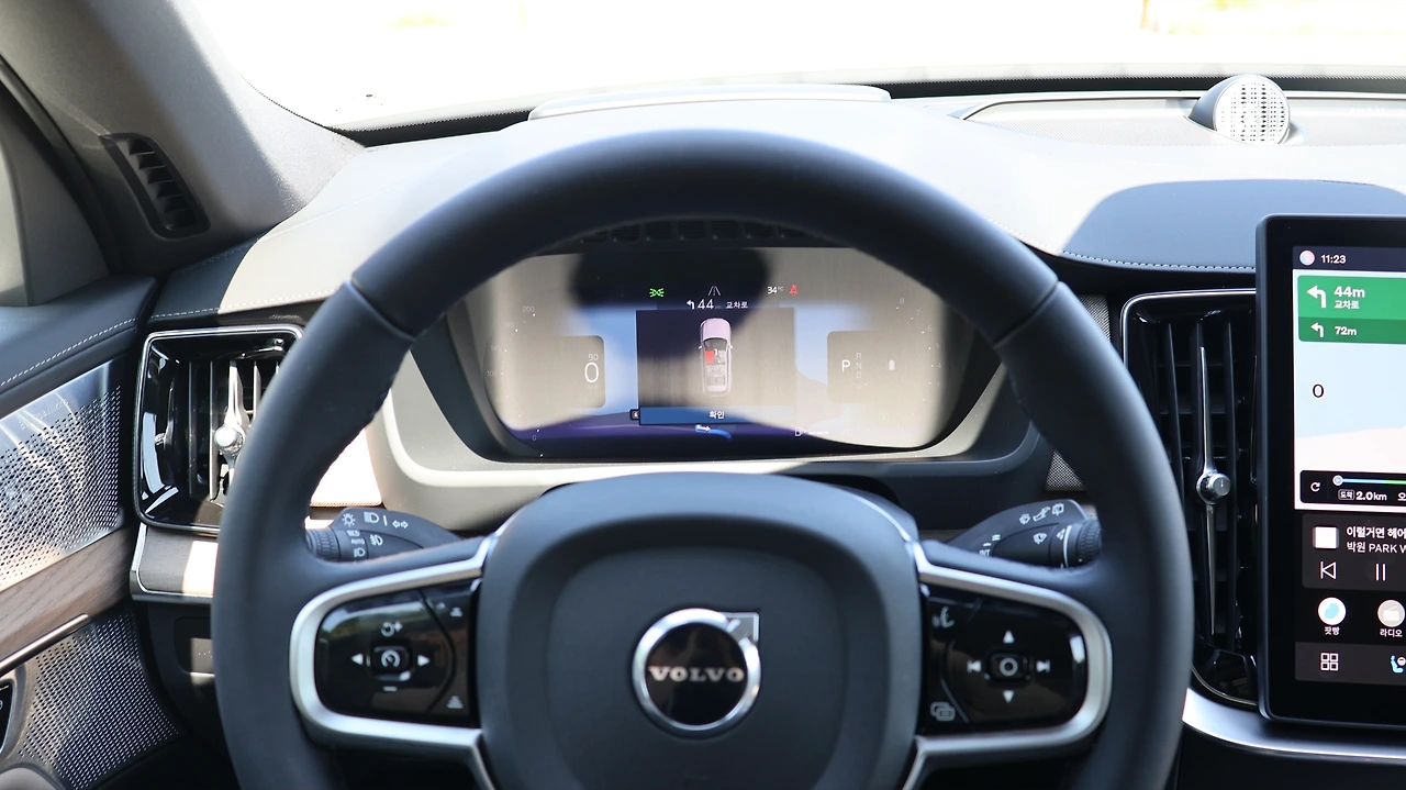 스티어링 휠 감도는 단단함과 부드러움 두 가지를 제공한다. 기본적으로 S90 등 다른 볼보 라인업에 비해 핸들링 자체는 묵직하게 세팅되어 있다. 때문에 오히려 스티어링 감도는 조작에 따른 차이점이 크게 와닿진 않았다. 아무렴, 고속에서의 편안한 크루징 감각이 가장 만족스러웠다. 안정적으로 잡혀있는 스티어링 휠 무게감과 유연하게 반응하는 섀시, 그리고 탁월한 정숙성 또한 XC90의 강점이라고 앞서 밝혔다. 이는 고속에서도 유효한데, 루프쪽 소음을 제외하면 마주하는 풍량 대비 소음이 현저히 적다고 느껴볼 수 있다.