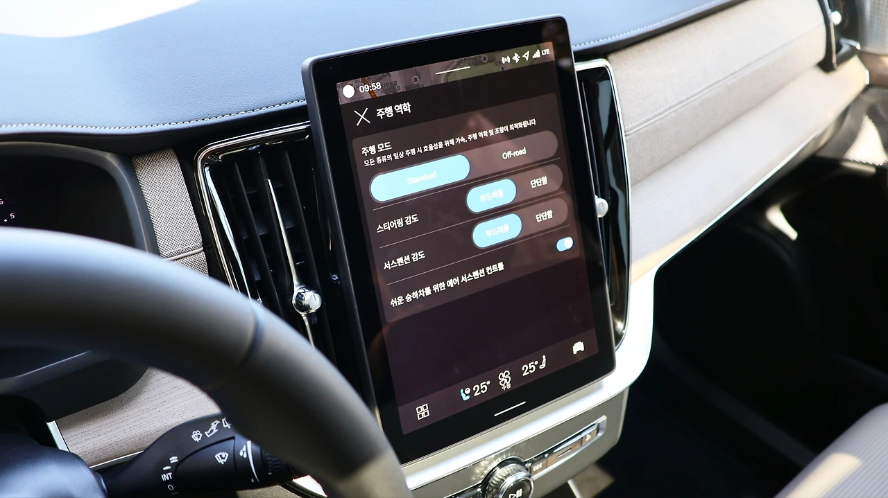 이번 페이스리프트의 핵심은 ULTRA 등급부터 적용되는 에어서스펜션에 있다. 원래 볼보가 채택하는 SPA 플랫폼은 리프 스프링과 댐퍼로 구성되는 독특한 구조를 택하는데, 안정적이나 다소 단단한 승차감을 보여주곤 했다. 이번 에어서스펜션 적용 모델도 마냥 부드럽지는 않지만, 안락하고 편안한 승차감이 더욱 강조되기는 했다. 약간의 롤링을 허용하는 움직임과 유연한 충격 흡수, 특히 노면의 잔 요철이 유입되지 않고 소음도 잘 억제된다는 점이 마음에 들었다. 일상 주행에서 파워트레인 세팅과 최상의 조화를 보여준다.