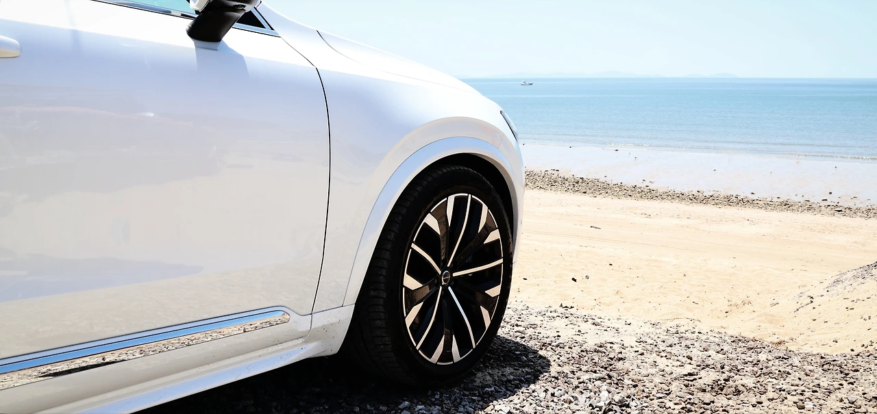 준대형 SUV다운 우람한 덩치가 느껴지는 측면 디자인이다. 볼보는 기존부터 차량 디자인에 깔끔한 면을 주로 활용해왔다. 이는 시각적인 견고함을 전해주는 요소이며, 볼보의 브랜드 철학과 일치하는 부분이다. 여유로운 개방감을 전하는 안정적인 벨트라인과 넓은 C필러 글래스 형상도 여전하다. 물론 페이스리프트의 변화는 있다. 21인치 휠 디자인이다. 커다란 사이즈의 여유로움은 물론, 마치 정교한 금속 가공품 같은 스타일링이 정말 매력적이다. 특히 바디 컬러 클래딩이 기본 적용되어 더욱 고급스러운 분위기가 흐른다.