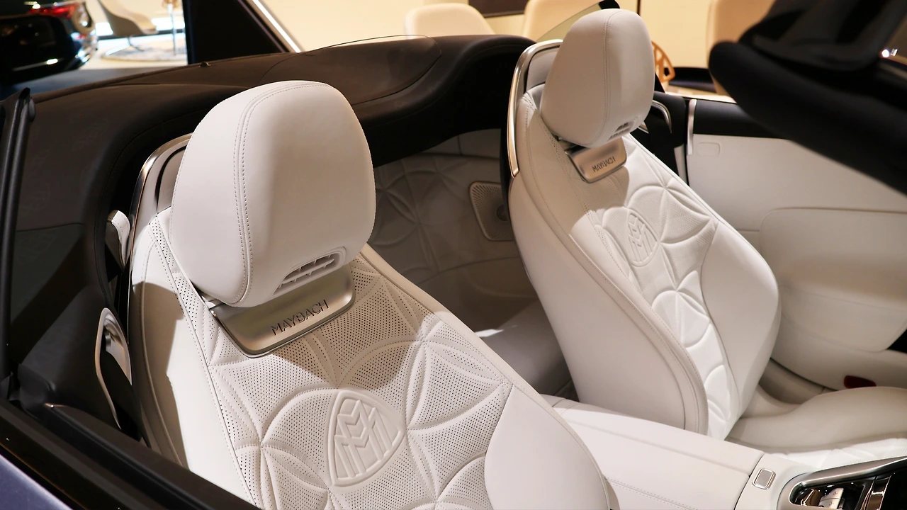 차량 전반을 도배하는 마이바흐 패턴이 보는 이에 따라 과하게 느껴질 수는 있다. 다만 실물로 접해본 결과 생각보다 패턴 자체가 시선에 사로잡히지는 않는다. 멀리서 보면 단지 투톤 컬러의 보닛 같은데, 가까이에서 살펴보는 경우 정교하게 마감되어 있는 엠블럼 패턴을 확인할 수 있는 셈이다. 전면 디자인 구성 자체는 마이바흐 S클래스와 패밀리룩을 보여주며, 전체적인 차량 분위기에서는 21인치 멀티 스포크 휠이 전하는 우아한 스탠스가 돋보인다. 2시트 구조를 택하며 탑 개방 시 느껴지는 우아한 실루엣도 큰 매력이다.