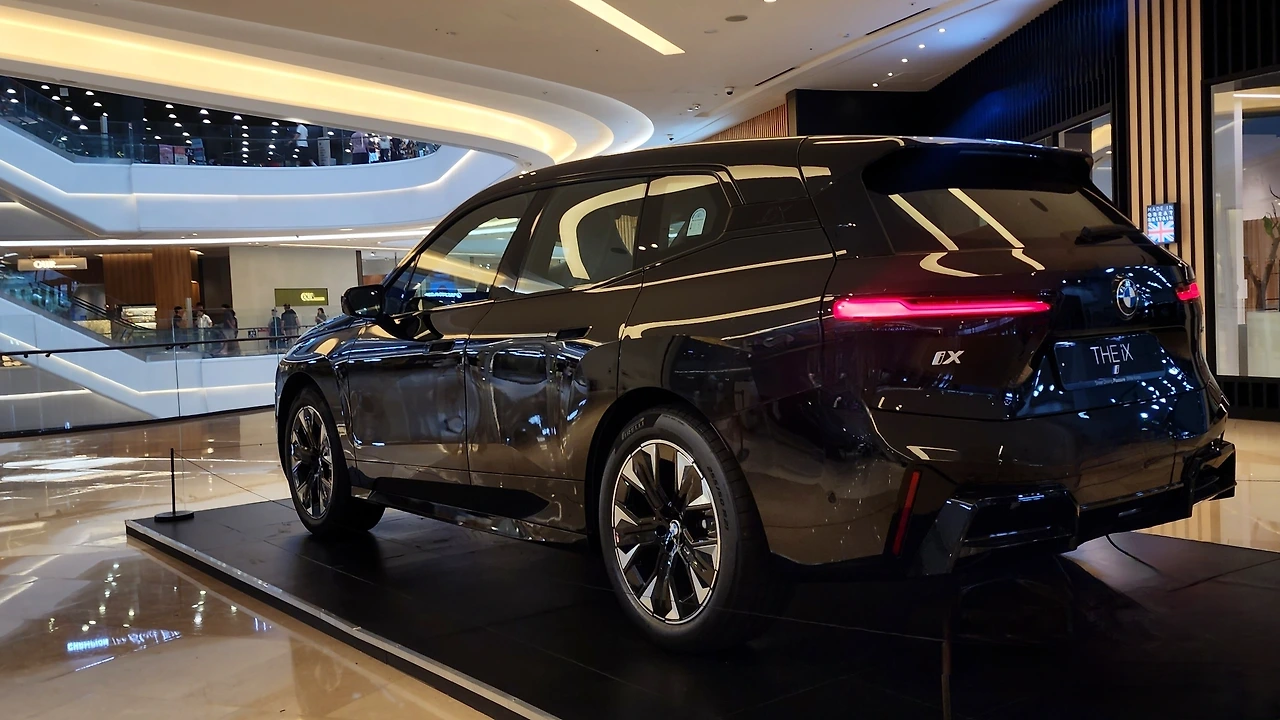 iX의 페이스리프트는 BMW의 차세대 EV 라인업 '노이어 클라세' 룩과 유사해졌다. 중앙 버티컬 타입 라디에이터 그릴과 헤드램프 커버는 직접적으로 연결된다. 그리고 수직형 DRL을 적용하여 카리스마 있는 첫인상을 연출한다. M스포츠 패키지와 아이코닉 글로우 적용으로 더욱 BMW 다운 분위기다. 측면은 SUV 치고 지상고와 차고가 낮다. 벨트라인까지 낮게 배치되어 MPV에 가까운 프로필인데, 21인치 휠 타이어와 가파른 D필러 라인이 역동성을 부여해 준다. 얇게 디자인된 테일램프 그래픽 또한 스포티한 면모를 지닌다.