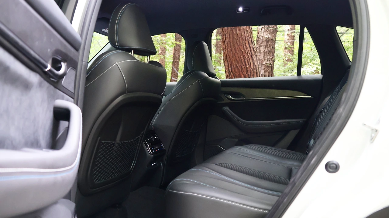 스티어링 휠은 적당한 두께의 그립과 물리 버튼으로 만족스러운 사용감을 제공했다. 다만 패들시프트가 제공되지 않는 점은 아쉽다. 전반적인 편의 기능은 동급 차종들과 대등한 수준, 다만 앰비언트 라이트의 적용 부가 1열 도어로 제한적이다. 대신에 시승 차량 '알핀' 등급은 실내 소재와 마감 품질이 대폭 차별화된다. 대시보드를 마감하는 블랙 알칸타라나 인조 나파가죽 블랙 시트, 스웨이드 헤드라이닝, 각종 엠블럼과 블루 스티칭, 플래그 라벨 등 감성적인 실내 분위기가 느껴진다. BOSE 10 스피커 적용시 액티브 노이즈 캔슬레이션 기능까지 제공되는 구성이다.