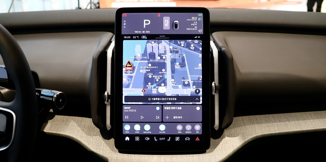 실내 공간이다. 세련미가 돋보였던 외관 디자인처럼, 실내 공간 역시도 창의적이고 고급스럽다. 우선 소재부터가 남다르다. 차콜 색상의 마감 소재는 차분한 분위기를 더하기도 하는데, 이는 재활용 폴리에스터를 활용한 올 블렌드 소재라고 한다. 또, 스웨덴과 핀란드 자연에서 얻어낸 소나무 오일을 원료로 하는 바이오 소재 '노르디코'를 활용하는 등 환경친화적이면서, 안락한 실내 분위기 구현을 위해 노력했다. 다섯 가지 UI 테마와 앰비언트 라이팅도 스웨덴의 자연에서 영감을 받았다고 하며, 가변식 컵홀더로 공간성을 개선한 바 있기도 하다.