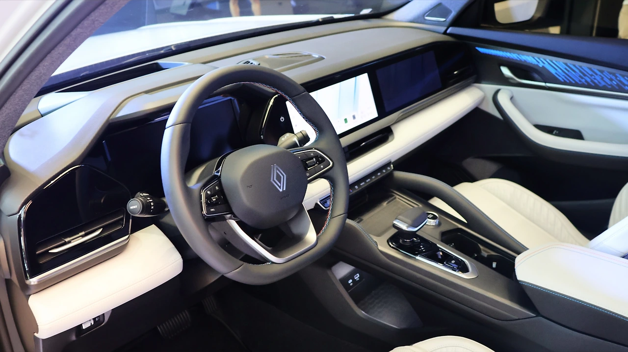 참고로 '에스프리 알핀' 트림의 전시차량이 바로 신규 색상 '새틴 유니버스 화이트' 컬러가 적용된 모습이다. 기존 유광 화이트 컬러의 그랑 콜레오스 대비, 차분하면서도 고급스러운 색감이 느껴지는 색상이다. 새틴 유니버스 화이트 색상 역시도 테크노 트림을 제외한 두 가지 등급에서 유료 옵션으로 선택 가능하다. 참고로 에스프리 알핀 트림의 경우, 로장주 로고&네이밍 엠블럼이 새틴 블랙 컬러로 변경된다. 또, 최상위 트림에 한해 '퓨어 라이트 그레이' 실내 색상 선택이 가능해졌다.