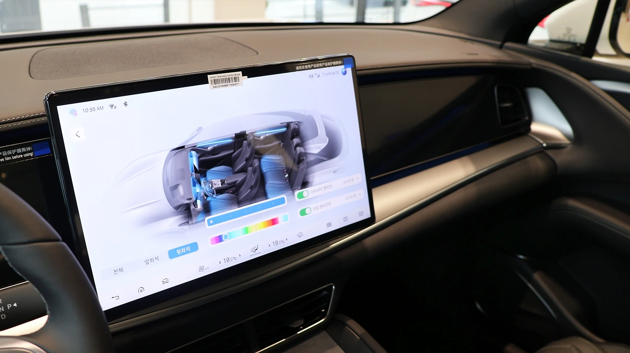씨라이언7의 실내 공간이다. 10.25인치 디지털 클러스터와 15.6인치 대화면 디스플레이로 인터페이스를 구축했다. 순정 T맵 내비게이션과 무선 폰 프로젝션, 보이스 컨트롤 등 UI 최적화도 훌륭하다. 대부분의 기능들은 센터 디스플레이에서 조작 가능하며, 무선충전 패드는 쿨링 시스템을 포함한다. 시트는 인조가죽 소재이지만 탑승감이 좋고, 통풍 시트와 같은 선호 기능이 기본이다. 변속기는 칼럼 레버 타입, 스티어링 휠은 D 컷이다. 실내를 감싸는 앰비언트 라이트는 물론, 인스트루먼트 패널 라이팅 기능이 화려한 분위기를 구현해 준다.