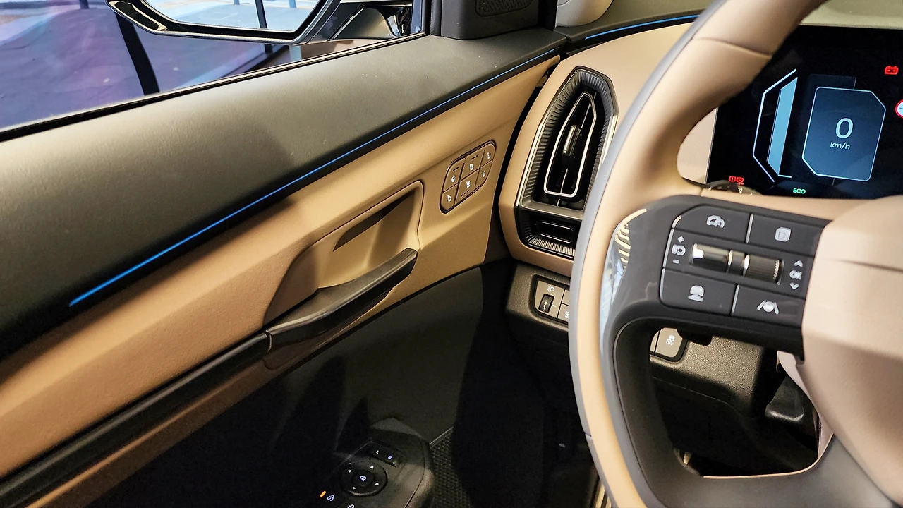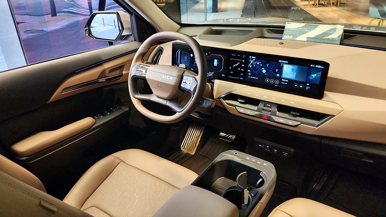 실내 공간이다. 12.3인치 디지털 클러스터와 내비게이션 디스플레이, 그리고 HUD로 인터페이스를 구축하고 있다. 최신 CCNC UI 적용은 물론, 공조장치 조작을 위한 별도의 스크린까지 마련하여 직관성을 더한다. 센터페시아는 중요한 버튼 위주로 간소화되었고, 하단부는 수납공간으로 마감된다. 기어는 칼럼 레버 타입, 센터 콘솔은 지문인식 센서 등 몇 가지 버튼과 가변식 컵홀더로 활용성을 높였다. 그 밖에 시트 기능 조작 버튼은 도어트림에 배치했다. 프리미엄 투톤 스티어링 휠, 릴렉션 컴포트 시트, 앰비언트 라이트 등으로 고급감을 보강한다.