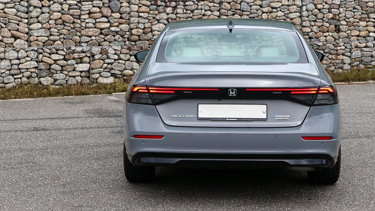 그렇듯 디자인의 지향성이 명확하다 보니 별다른 특징이 없음에도 세련미가 느껴지고는 한다. 정확히는 미니멀한 스타일링 기법 자체가 어코드만의 개성이 되어 준다. 한때 디자인 요소의 과잉을 리드했던 일본 브랜드인 만큼, 성격의 차이는 더욱 분명하게 느껴졌다. 어코드는 항상 경쟁 모델에 비해 전장이 긴 편이었는데, 현행 모델도 마찬가지다. 그만큼 비율적으로도 자유로운 모습이다. 길게 뻗어있는 보닛과 유연한 루프라인이 역동적인 프로필을 구현하며, 특히 리어 오버행이 긴 편이라 공격적인 스탠스가 느껴지게 된다.