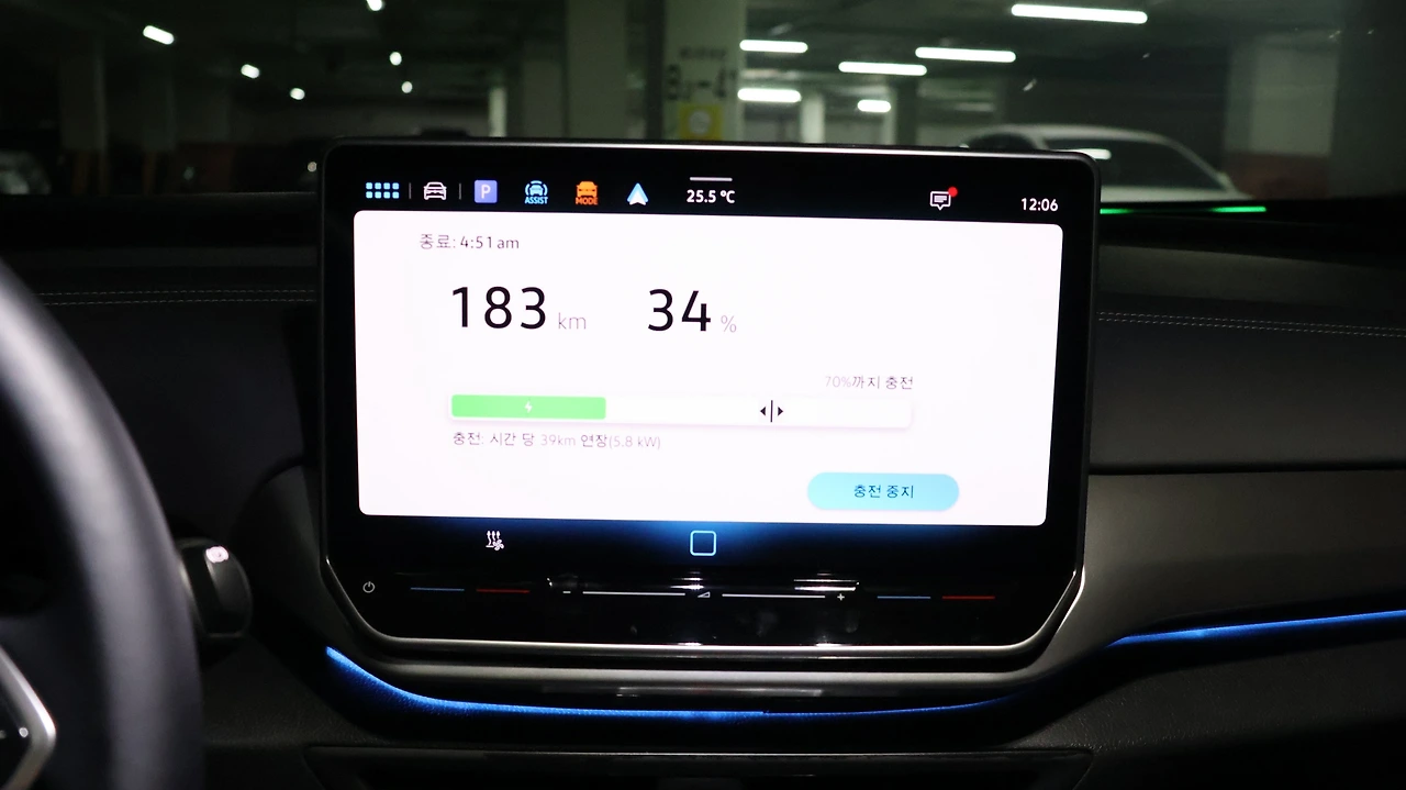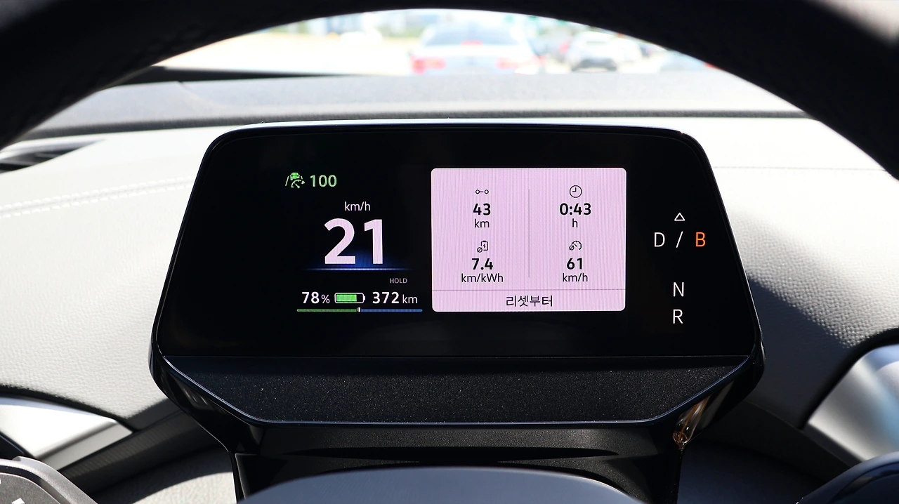 고성능 모터는 전비가 낮아질 수 있다는 단점이 있겠다. 다만 ID.4의 주행 전비는 기대 이상으로 놀라운 수준이었다. 43Km를 고속도로 항속 주행했을 때, 7.4Km/kWh가 계측되었다. 2톤이 넘는 중량과 고속주행이라는 점을 감안하면 정말 놀라운 수준, 이론상 550Km 이상도 1회 충전으로 주행 가능한 수준이다. 공조 시스템도 충분한 만큼 작동한 케이스다. 다만 주행 당시 외기 온도가 35도 이상이라서 배터리 반응에 가장 효율적인 조건이긴 했다. 참고로 고속도로 인증 전비는 4.5Km/kWh, 10%에서 80% 급속 충전 시간은 최소 28분으로 알려진다.
