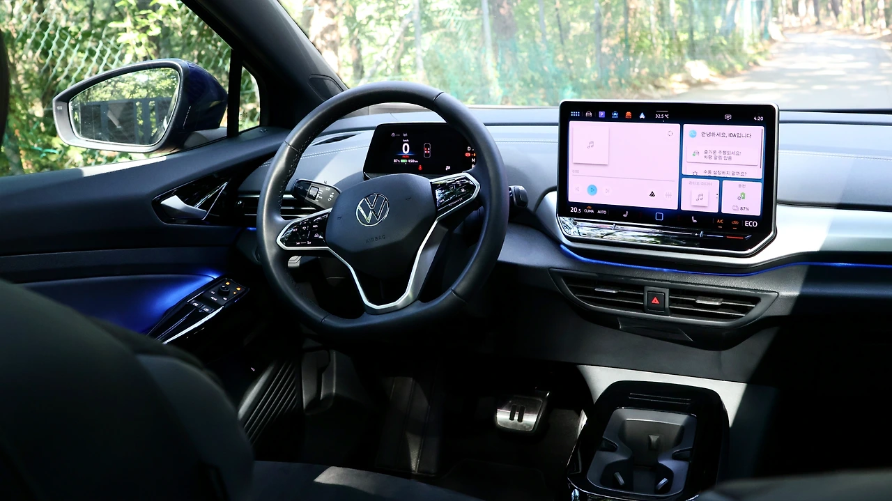 개방적인 인테리어 디자인도 장시간의 주행에서는 만족스러운 부분이었다. EV전용 플랫폼을 바탕으로 하는 만큼 넓은 공간 자체도 이점이긴 한데, 공간 디자인 자체를 '전기차'라는 관점에서 재해석한 느낌이 든다. 특히 소형 클러스터는 필수적인 정보를 담아내기에 부족함이 없으면서도, 개방감을 효과적으로 개선해 주는 부분이다. 연식변경을 통해 확장된 12.9인치 스크린은 터치 인터페이스의 직관성과 시인성을 대폭 보완한다. 애초에 폭스바겐의 전기차 라인업 ID 시리즈의 명칭 자체가 'Intelligent Design'을 의미할 정도로 기능적인 디자인에 대한 애착이 있었을 것이다.