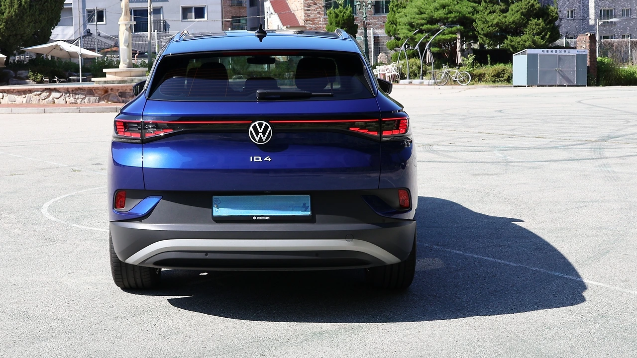 휠 사이즈는 20인치다. 은색 전면 가공 패턴은 필러 스트립과 조화를 이루는 모습이다. 개인적으로 ID4는 후면 디자인이 가장 매력적이다. 앞서 언급한 공격적인 C필러 형상과 함께, 리어 윈드 실드가 슬림 하게 배치된다. 바로 하단부를 장식하는 3D LED 리어램프는 미래지향적인 감성을 더하며, 테일게이트에 강한 볼륨을 더해 입체감을 살려내기도 한다. 마찬가지로 동급 SUV에 비해서는 리어 오버행도 짧은 편이다. 대신 넘버 플레이트나 리플렉터, 그리고 은색 언더바디 가니시 등 디자인 요소들을 넓게 배치하여 시선을 분산시켰다.