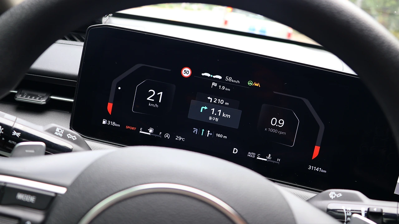 시승 차량은 2.0 가솔린 자연흡기 엔진이 탑재되어 있다. 일반적으로는 1.6 가솔린 터보의 수요도 많은데, 같은 프레스티지 트림으로는 가격이 79만 원 정도 저렴하다. 가장 큰 차이는 역시 출력이다. 최고 출력 160Hp, 최대토크 20.0Kg.m 수준의 퍼포먼스를 보여준다. 변속기도 6단 토크컨버터로 교체되며, 자연흡기라서인지 공인 연비도 12.2~12.6Km/l 수준으로 대략 1Km/l 가량 낮다. 스티어링에 랙 타입이 아닌 C-MDPS가 적용되는 등 전체적으로 저가형의 구성을 채택하는데, 79만 원의 비용 절감이 크게 합리적으로 느껴지진 않는게 사실이다.