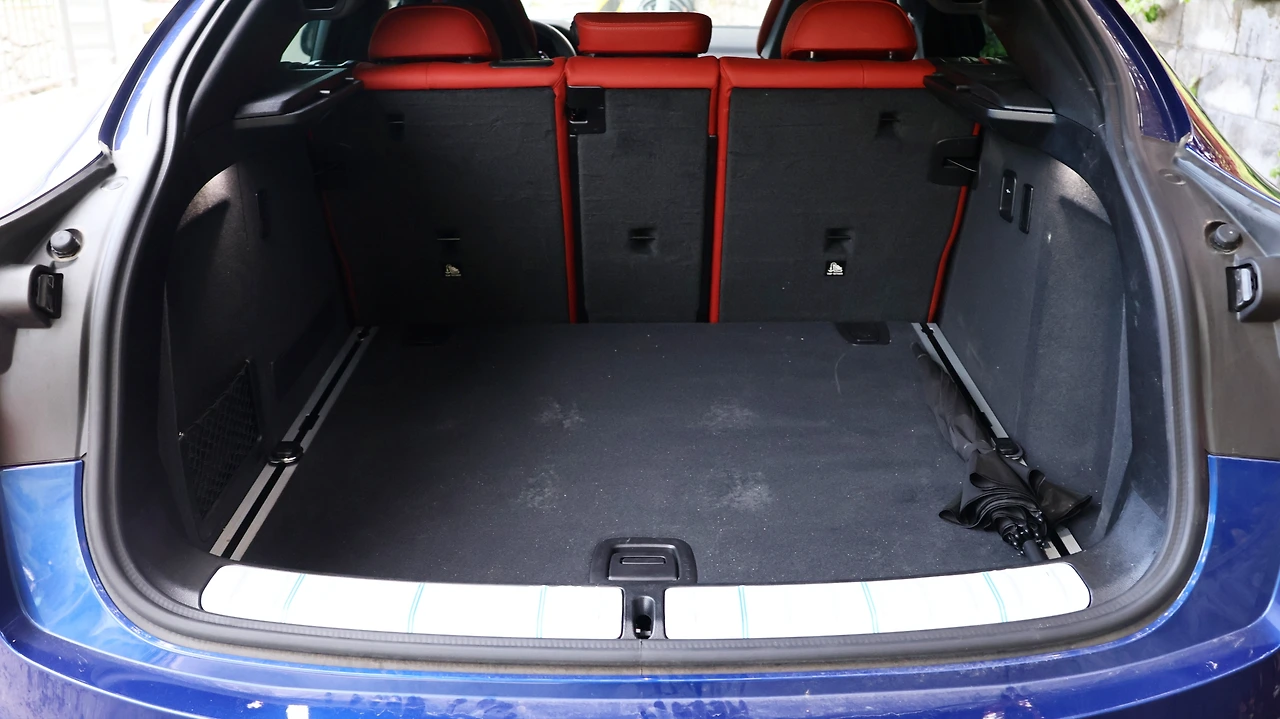 쿠페형 SUV인 만큼 동급 차종들에 비해 뒷좌석이 협소해 보이는 건 사실이다. 그래도 중형 SUV라는 포지션 상, 평균적인 체구의 성인이 탑승하기에 무리가 되진 않는다. 레그룸은 크게 다를 바 없고, 헤드룸은 등받이 각도를 눕히고 선루프 면적을 좁혀 공간을 확장한 모습이다. 편의 장비로는 독립 공조와 시트 열선, 암레스트 컵홀더 정도가 있다. 트렁크 공간은 평탄하게 마감되어 있다. 매트 아래에도 쓸만한 잔여 공간이 마감되어 있고, 러기지 보드도 수납 가능하다. 2열 시트는 4:2:4 폴딩을 지원하기에 실내 공간 활용도가 높아진다.