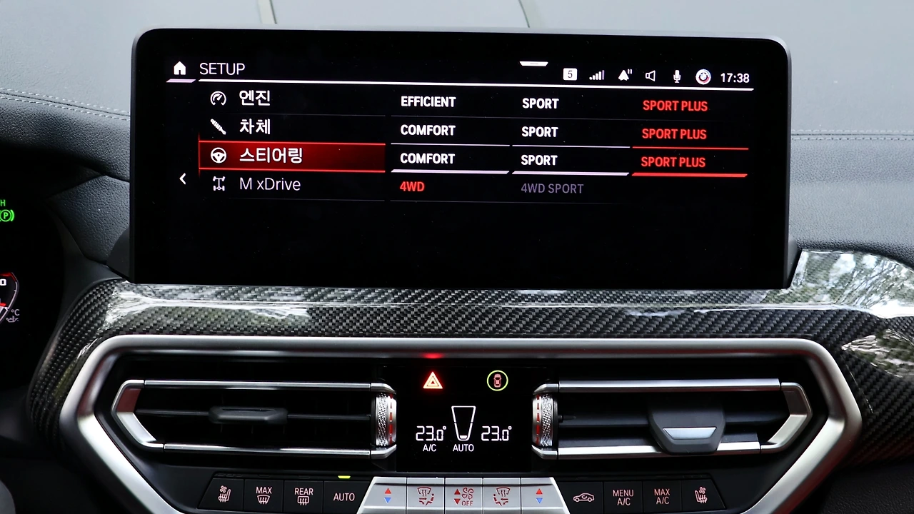 ROAD 모드에서 느껴지는 M 셋업의 은은한 긴장감은 자꾸만 스포츠 플러스 모드에 손이 가게 만든다. M 모드로 전환하는 경우 클러스터와 HUD의 UI까지 변경되며, RPM과 기어 단 수, 속력을 더욱 직관적으로 확인할 수 있다. X4 M 컴페티션에는 감쇠력 조절이 가능한 어댑티브 M 서스펜션이 탑재되어 있다. 함께 회두성을 개선해 주는 M 스포츠 디퍼렌셜과 즉답적인 제동감을 제공하는 M컴파운드 브레이크 시스템까지 제공된다. M 모드에서의 승차감은 딱딱하다고 표현할 수 있는 수준, 쏠림이 거의 없고 노면에 대한 즉각적인 피드백이 느껴진다.