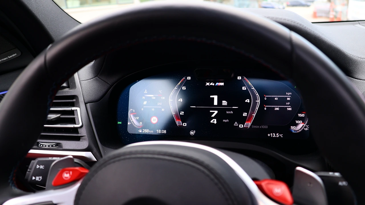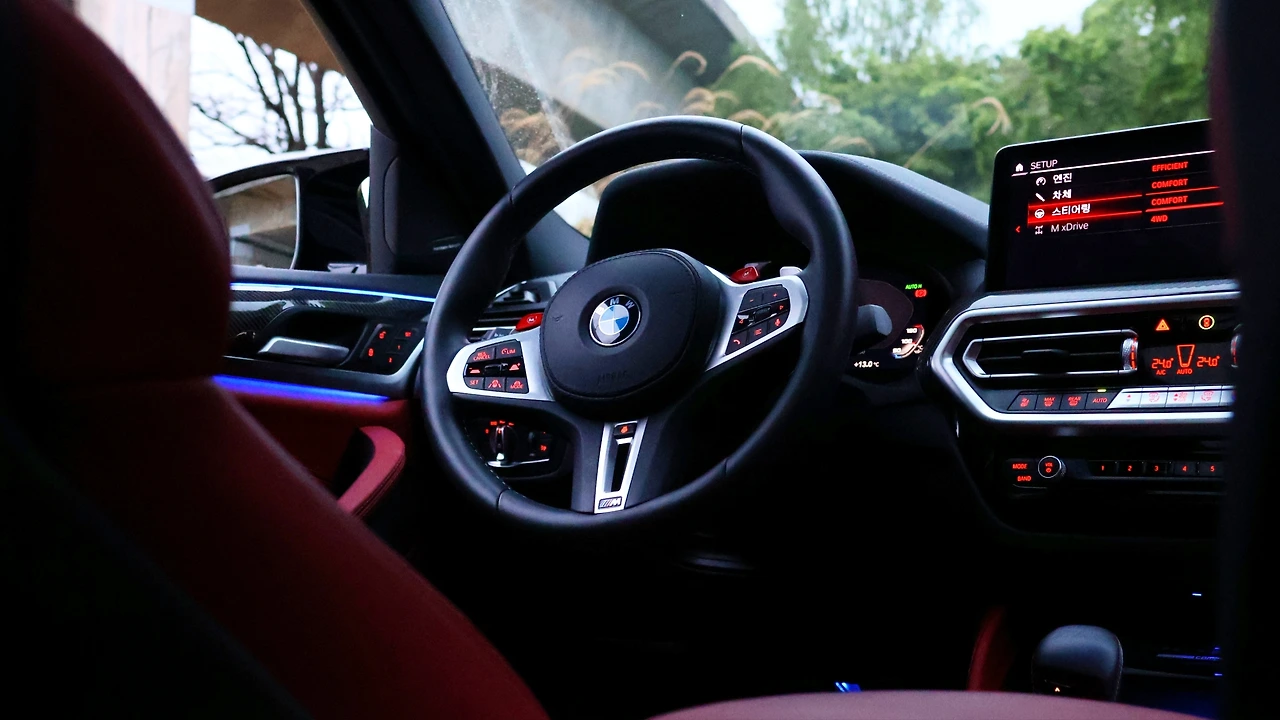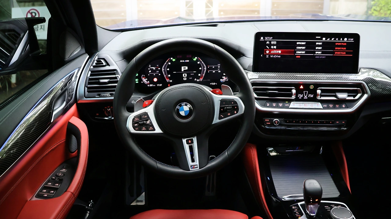 차량에 다가서면 라이트 카펫이나 웰컴 디스플레이 UI 등 다양한 옵션들이 운전자를 반겨준다. 일반적으로 스포츠성을 강조하는 M 디비전 모델들은 지상고와 차고가 낮아 승하차가 편리하진 않는다. 그런 측면에서 X4 M의 높은 지상고는 편의성을 개선해 주기도 하며, 운전석에 앉는 순간 느껴지는 스포츠 시트의 안정감 또한 만족도가 높다. 센터 콘솔에 위치한 시동 버튼은 자연스레 손이 가는 위치다. X4 M 컴페티션의 우렁찬 엔진 스타트 사운드는 자꾸만 듣고 싶고, 앞서 언급한 변속기 레버의 조작 방향도 차별화된 감성을 제공해 주었다.