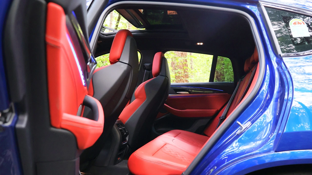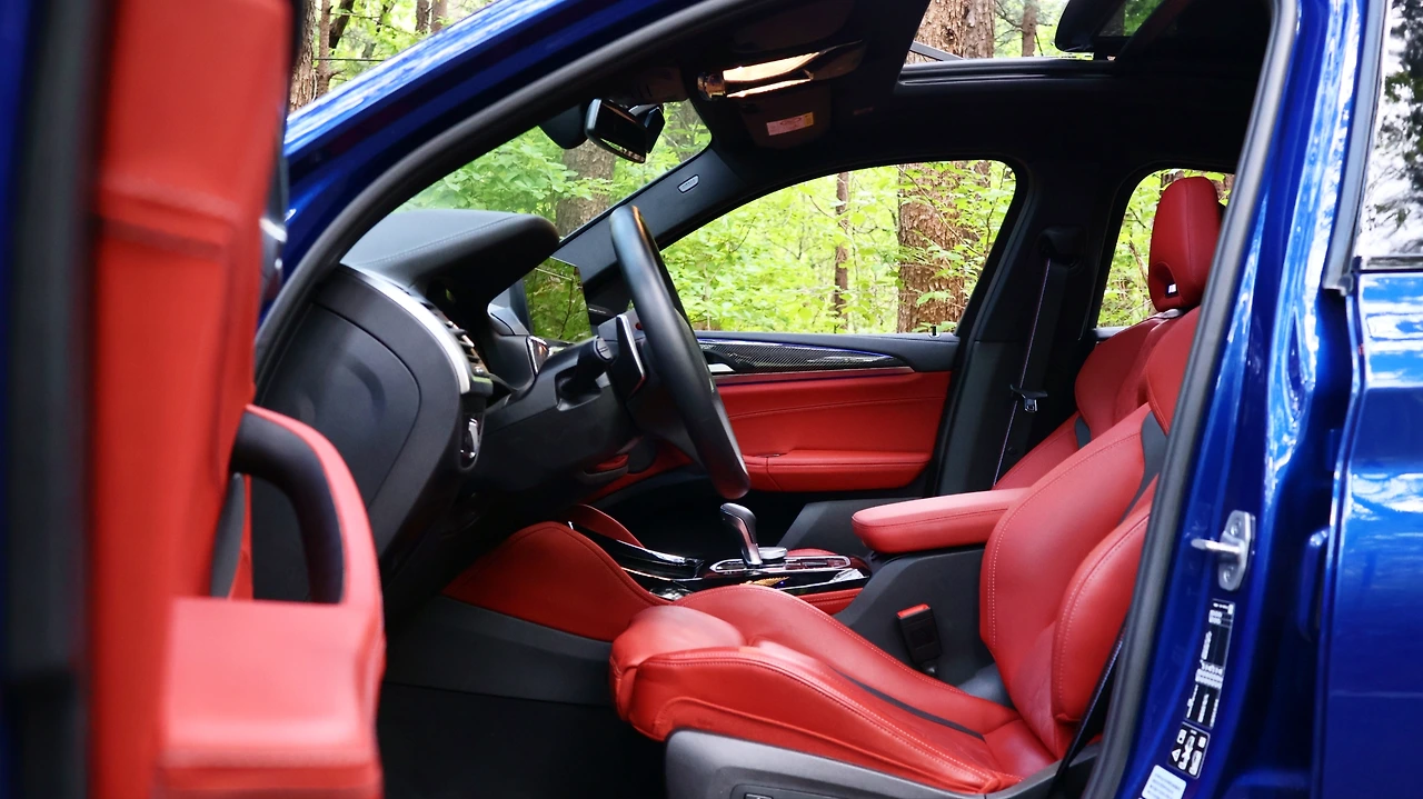 M 디비전 사양인 만큼 인테리어에서 느껴지는 디자인 감성도 일반 X4와는 다르다. 대시보드는 센사텍 가죽으로 마감되어 있으며, M 전용 카본 인테리어 트림과 헤드라이너가 스포티한 실내 분위기를 조성해 준다. 앰비언트 라이트도 마찬가지, 메리노 가죽 M 스포츠 시트의 M 로고에도 LED 불빛이 점등된다. M 전용 스티어링 휠은 두꺼운 그립과 M 모드 세팅 버튼을 지니고 있다. 가죽으로 감싸진 기어 레버는 조작 방향이 일반 차량과 차별화되며, 수동 차량을 변속하는 듯한 일말의 감성을 제시해 준다.