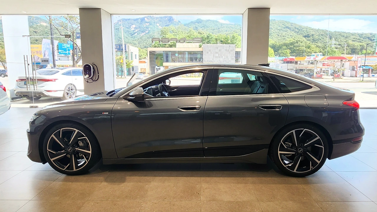 컨셉트카의 날카로운 디자인은 양산차량에도 그대로 구현해낸 아우디다. 전기차는 그 특성상 대형 라디에이터 그릴의 필요성이 사라지지만, 인버티드 싱글프레임으로 헤리티지를 연결해온다. 또, 전통적인 스포츠 세단의 '롱 노즈 숏데크' 비율을 유지한다는 점도 매력적이다. 보기에 좋은 디자인을 택한다는 의미와 같다. 동시에 디자인이 식상하게 느껴질 수 있다는 점은 분리형 헤드 램프를 통해 해소한 모습이다. 특히 기능보다는 멋의 역할에 가까워진 DRL을 분리하면서, 더욱 다채로운 그래픽을 첨부하며 브랜드 고유의 카리스마를 더했다.