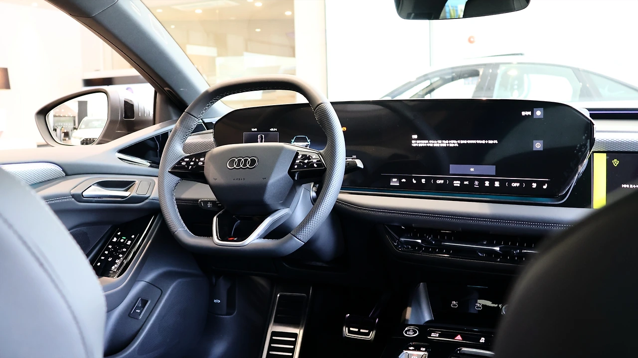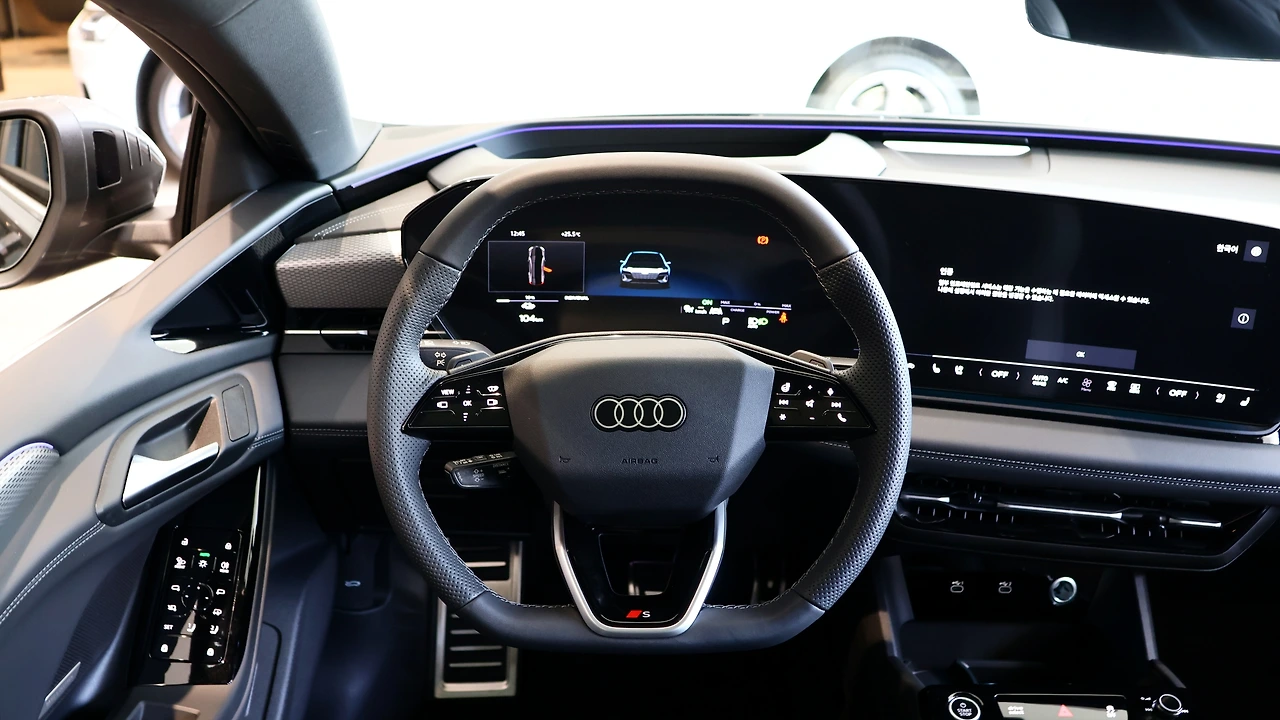 실내 공간은 선행 모델들과 유사하다. 11.9인치 디지털 클러스터와 14.5인치 MMI 디스플레이, 그리고 AR HUD로 운전석 인터페이스를 구축한다. 10.9인치 조수석 디스플레이도 적용 가능하다. 센터패시아 대부분의 기능은 MMI에 통합되었고, 주요 기능은 도어트림과 센터 콘솔에 분리 배치된다. 변속기는 토글 레버 타입, 스티어링 휠은 더블 D 컷 형태다. 앰비언트 라이팅은 랩 어라운드 스타일로 더욱 화려해졌고, B&O 3D 사운드로 사용자 경험을 극대화한다. 또, S라인 전용 엠블럼과 스포츠 시트 등으로 차별화된다.