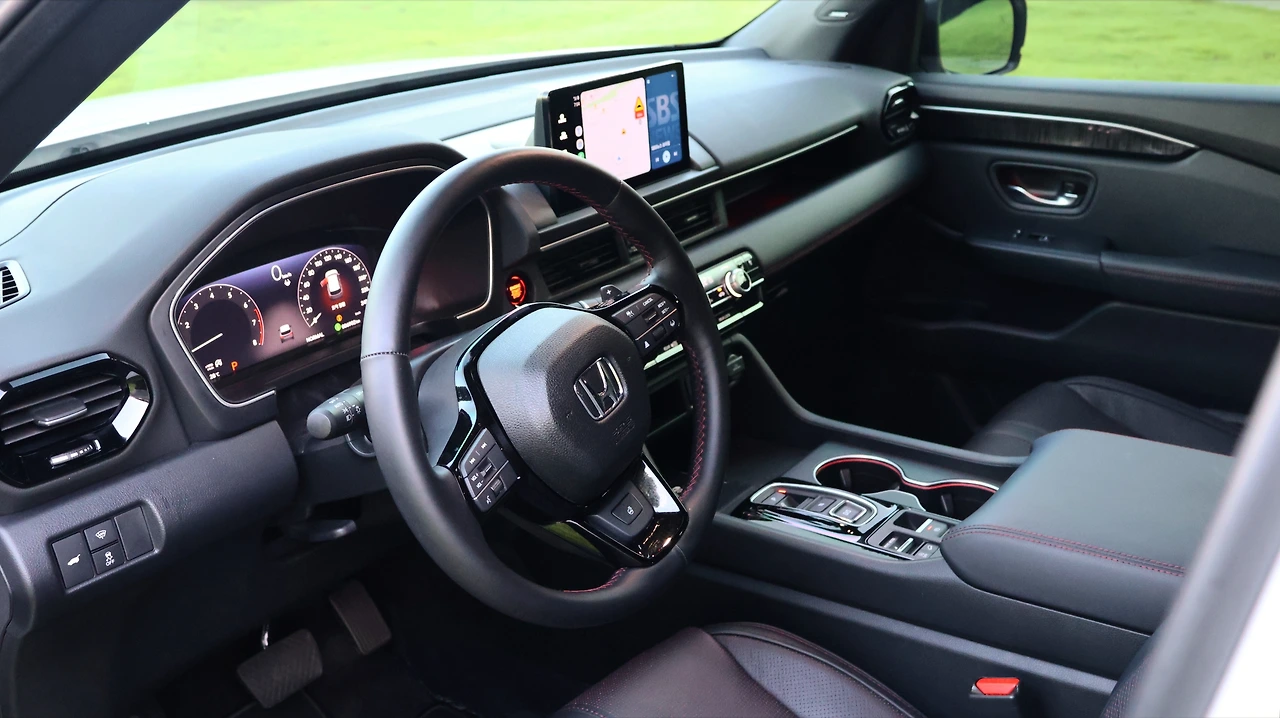 시승 차량은 혼다 파일럿 블랙에디션 트림이다. 기존 파일럿의 최상위 트림 '엘리트'에 전용 익스테리어 패키지와 실내 디자인 보강이 이뤄진다. 최근 혼다는 간결하면서도 직선 위주의 스타일링 기법을 보여주고 있는데, 이는 파일럿도 같다. 사다리꼴 형태의 LED 헤드램프 디자인, 그리고 육각형의 라디에이터 그릴이 대담하면서도 안정적인 분위기를 연출한다. 특징이라면 라디에이터 그릴의 프레임이 없이, 헤드램프와 하나로 연결된다는 점이다. 덕분에 간결한 디자인 구성에서도 세련되고도 개성적인 첫인상을 느껴볼 수 있다.