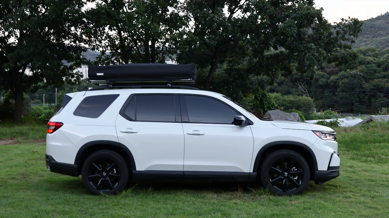 아울러 블랙에디션 트림의 차별화로 더욱 특별한 외관을 지니게 된다. 라디에이터 그릴과 헤드램프를 가로지르는 검은 색상의 그릴 바, 그리고 블랙 엠블럼과 범퍼 가니시 등등 멀리서도 느껴지는 존재감이 상당하다. 측면 디자인도 특별한 기교보다는 간결함을 남겼다. 혼다 파일럿의 전장은 약 5m 9cm인데, 워낙 전폭이 넓다 보니 상대적으로 짧아 보이는 경향은 있다. 특히 앞뒤 펜더의 볼륨이 과장되어 있기에 사진보다는 실물로 보는 덩치 압도적이다. 깔끔한 바디패널 형상과 함께, 두터운 C필러가 SUV 특유의 견고함을 잘 나타낸다.