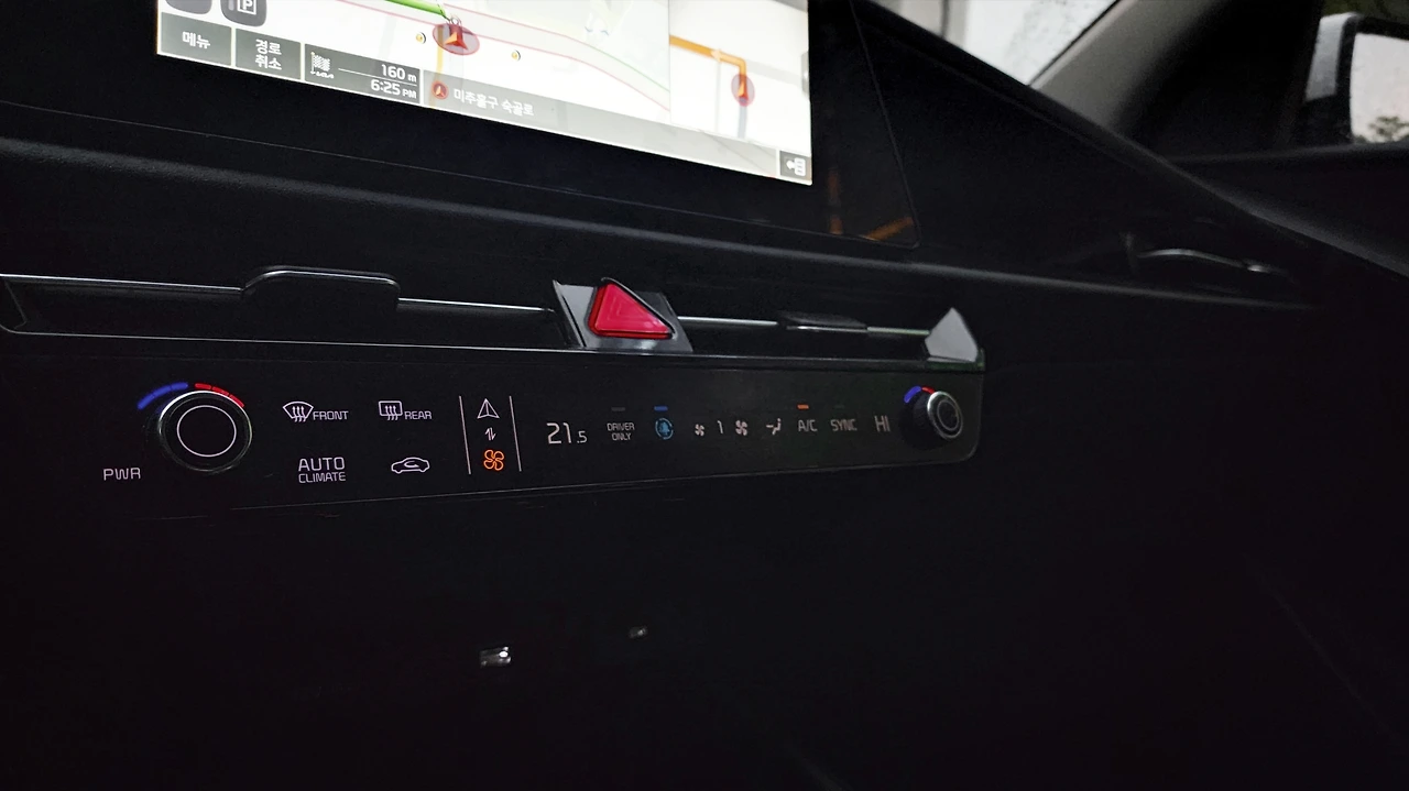 우선 시승 차량은 트렌디 사양에 일부 옵션이 추가되어 있다. 컨비니언스 패키지와 내비게이션이다. 센터 디스플레이의 경우 기본 사양은 8인치 오디오가 적용된다. 내비게이션 옵션을 추가하면 10.25인치 스크린과 무선 업데이트 기능이 적용된다. 또 한 가지 옵션 '컨비니언스 패키지'는 1열 시트 열선과 스티어링 휠 열선, 가죽 변속기와 버튼 시동 스마트키가 추가된다. 스마트키 때문에라도 필수 옵션일 듯하며, 옵션가 54만 원에 열선 기능까지 전부 탑재 가능하니 나름 합리적인 구성이다. 특이하게 독립 제어 풀 오토 에어컨이 기본 사양이다.