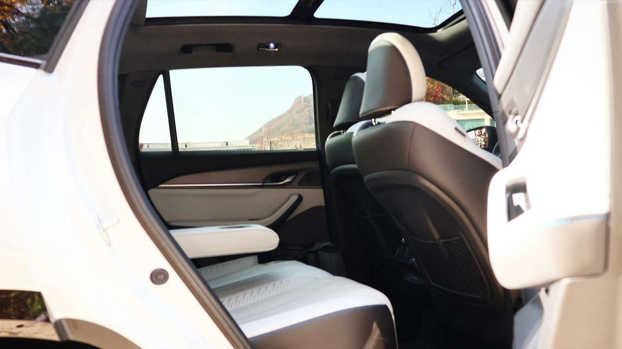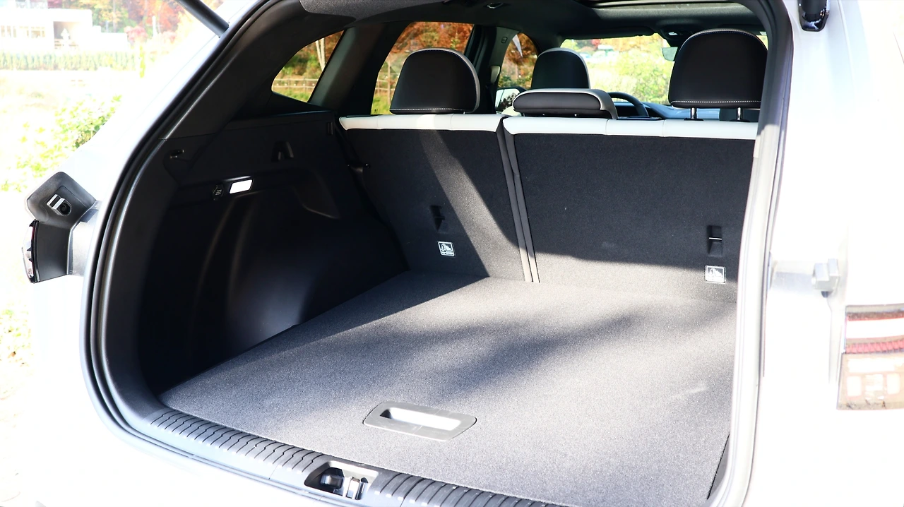 뒷좌석 공간이다. 그랑 콜레오스는 5인승 구성으로만 제공되며, 차체 형상부터 전고가 높아 여유로운 실내 공간을 확보한다. 하이브리드는 AWD를 제공하지 않는 만큼 기본적으로 센터터널이 낮고, 26년형부터 파노라믹 선루프 적용을 통한 실내 개방감 개선이 가능해졌다. 2열 편의 기능은 독립 공조장치와 2열 시트 열선, 암레스트 컵홀더 정도로 구성된다. 수동식 리클라이닝과 시트 폴딩은 6:4 비율로 제공된다. 파워 트렁크 역시 기본, 트렁크 공간은 넓고 평탄하게 마감되었다. 바닥 매트 하단부 공간도 폼 트레이를 통한 깔끔한 마감을 보여준다.