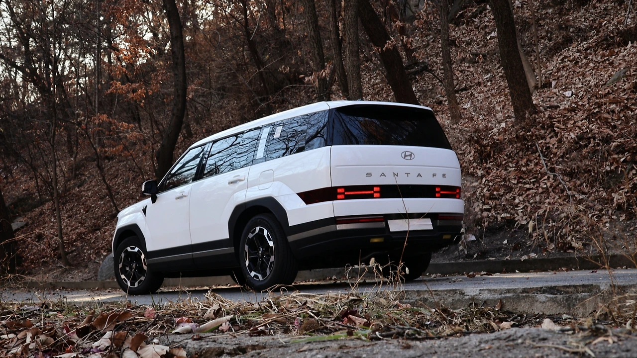 특히 싼타페는 후면 디자인에 대한 호불호가 많이 갈렸다. 개인적으로는 정통 SUV 특유의 박스 같은 분위기를 잘 살린 것 같아 마음에 들어 하는 부분이다. 실루엣 자체가 투박한 건 사실이지만, 나름 리어 펜더의 볼륨감이나 싱글 머플러 팁 같은 부가적인 요소들로 매력을 더하긴 했다. 그리고 싼타페는 깡통 사양에도 LED 리어 콤비네이션 램프가 적용된다. 경쟁 모델 쏘렌토와 가장 차별화되는 부분이다. 헤드램프와 마찬가지로 'H'형태의 그래픽이 선명하게 각인되었다. 전체적으로 싼타페 익스클루시브 등급은 그만의 매력이 있는 외모였다.