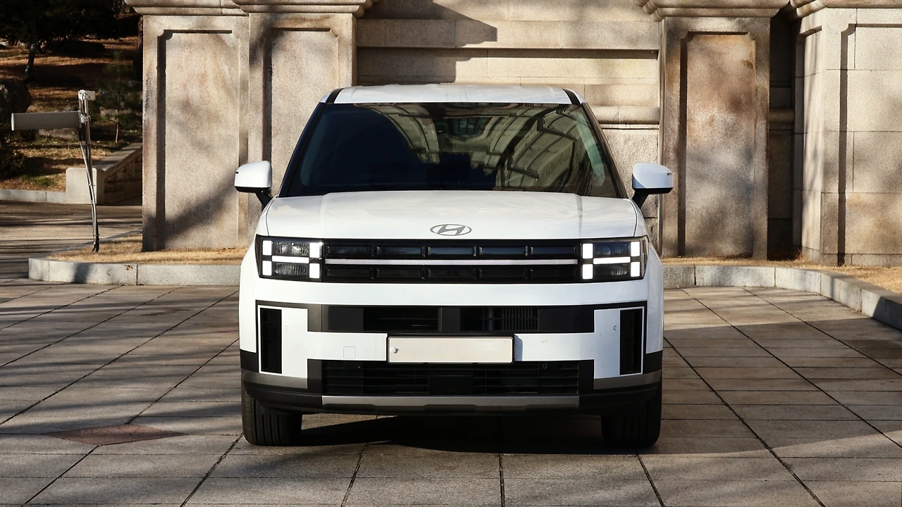 아무런 디자인 옵션이 적용되지 않은 싼타페 MX5의 외관이다. 최근 중형급 차량들은 LED 헤드램프와 DRL이 기본이다 보니 큰 차이를 느끼기 어렵다. 싼타페는 심지어 방향지시등까지 기본 LED 방식이다. 다만 빛 반사 방식이 프로젝션이 아닌 MFR 타입이라 헤드램프 점등 시에는 선명도가 약간 낮아진다. 사각형 패턴이 각인된 라디에이터 그릴은 단단한 인상이다. 범퍼까지 직사각형 형태로 디자인하여 통일감이 느껴진다. 사실 캘리그래피 등급부터는 그릴 패턴이나 몰딩 색상, 특히 언더커버가 전부 하이그로시 소재로 변경되니 차이점이 많아지긴 한다.