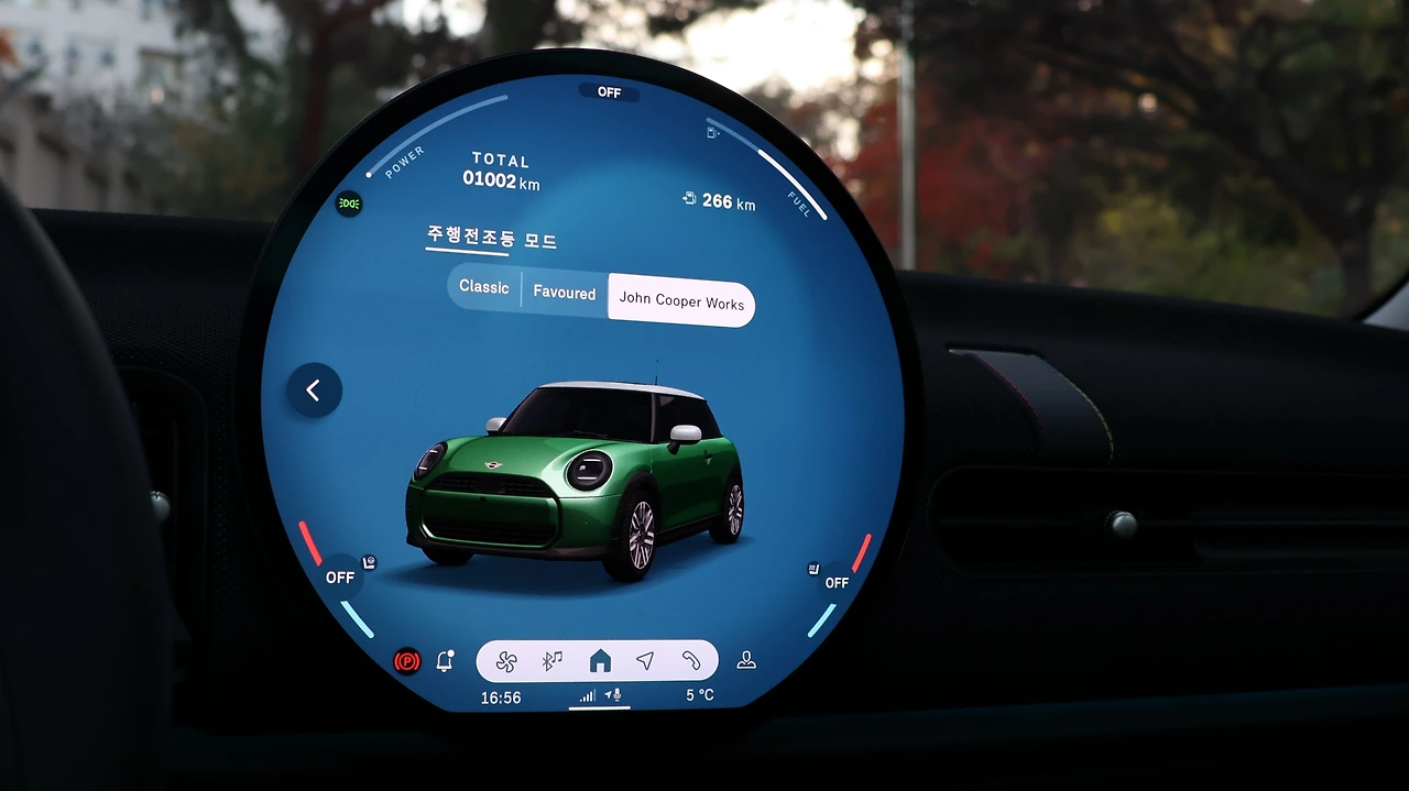 즐거운 시승이었다. 차세대 미니 해치백은 웰컴 세리머니로 좌측 DRL이 한번 깜빡이며 윙크를 재현한다. 소비자가 무엇을 바라는지 알고 있다. 클러스터를 생략했다는 점이 의아하긴 했지만 역시 적응의 시간이 모든 걸 해결한다. 또, 야간에는 스티어링 휠 너머로 비치는 앰비언트 라이트를 감상할 수 있다. 만약 페이버드 트림이라면 컴바이너 타입 HUD가 클러스터를 대체해 주긴 한다. 그러나 클래식 트림도 웬만한 편의 기능은 전부 갖추고 있다. 지금까지의 미니를 생각하면 클래식 트림이 표준이고, 페이버드 등급이 오버 스펙에 가까운 것이다.
